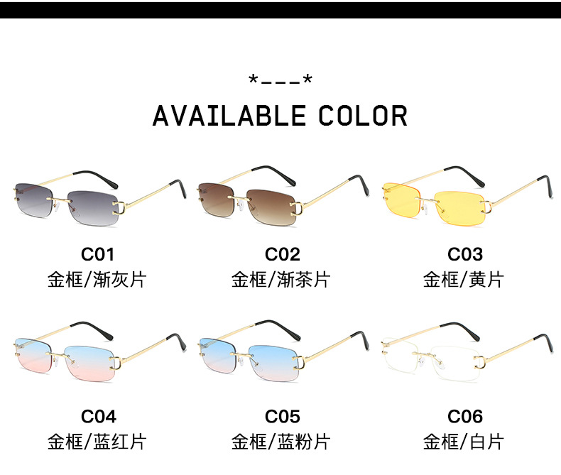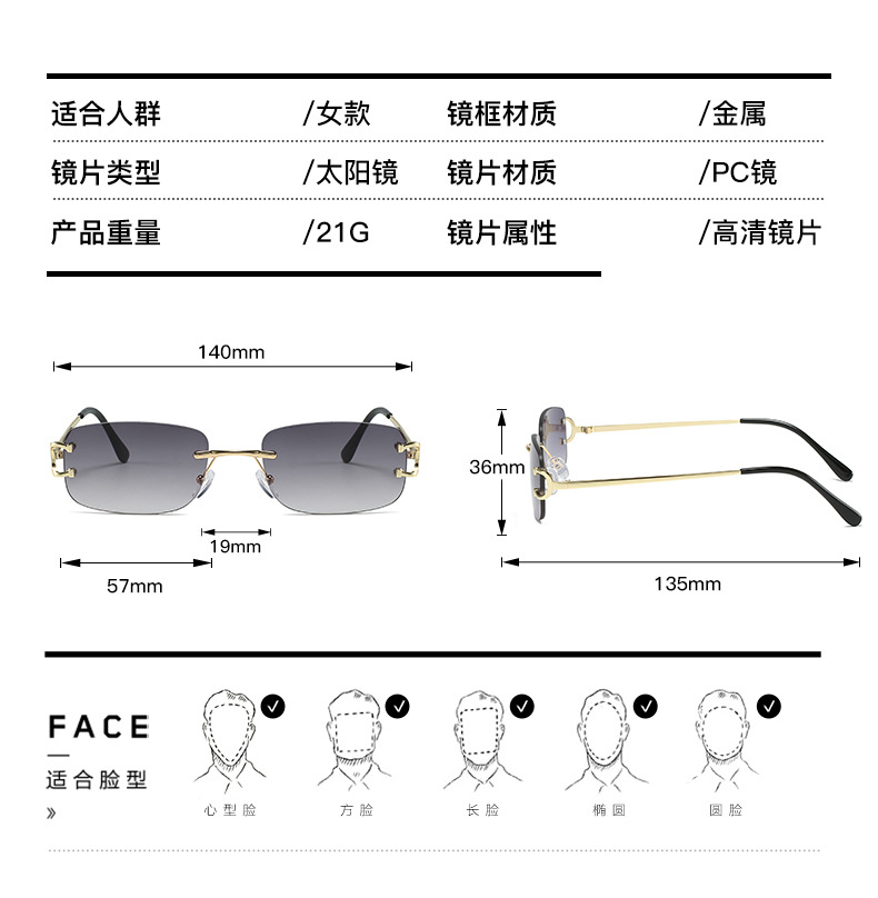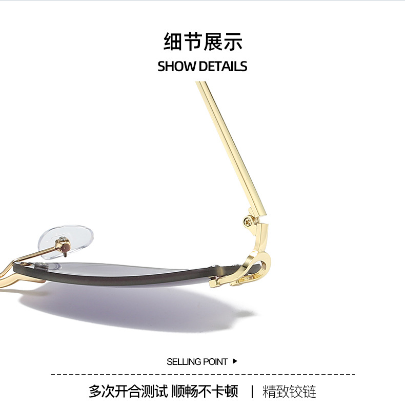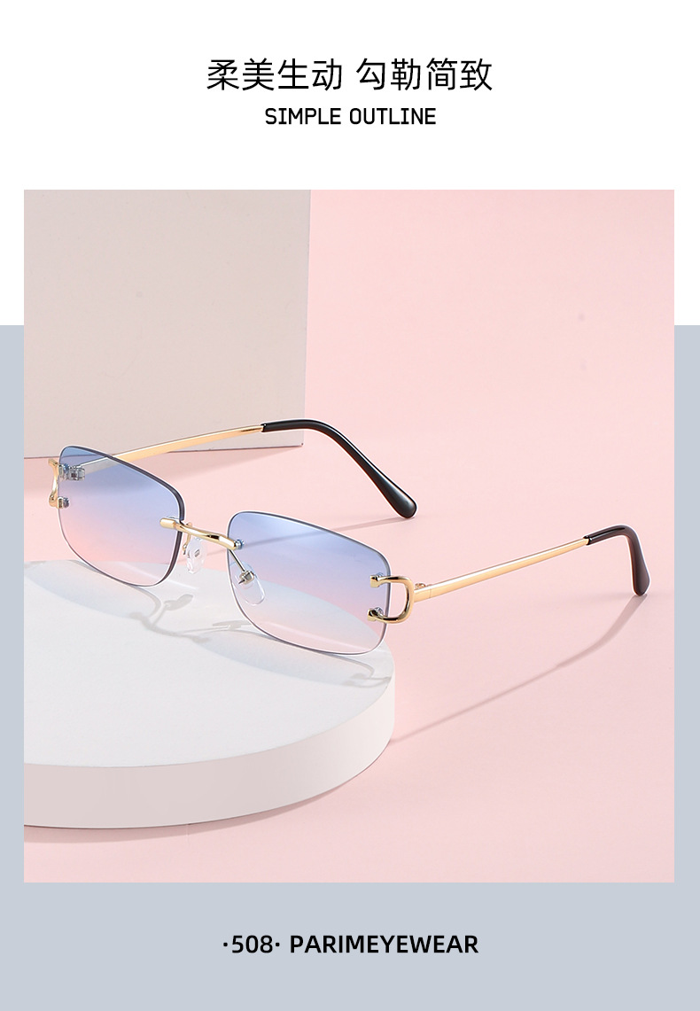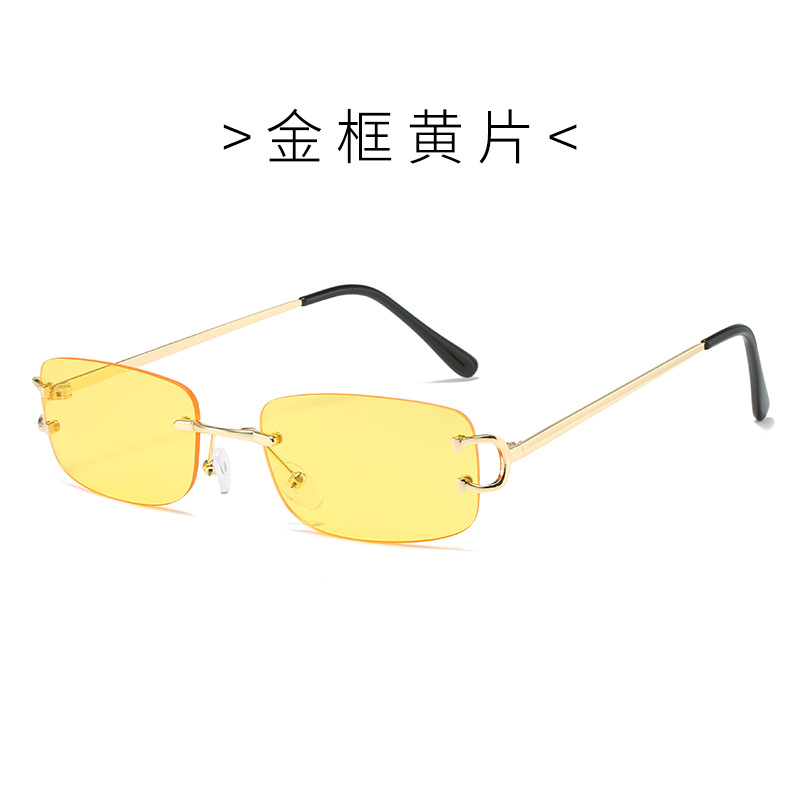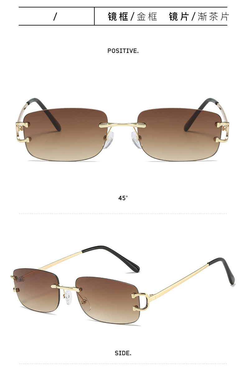 Manufacturer wholesale frameless glasses with cut edges, square men's and women's sunglasses, metal, European and American street photography, trendy cross-border sunglasses