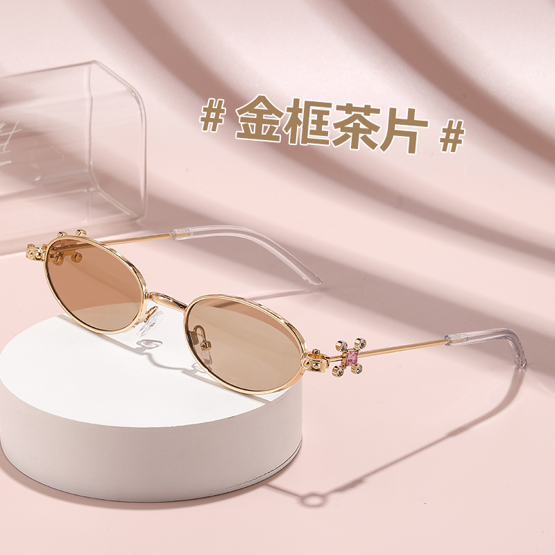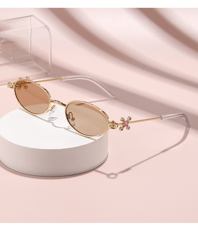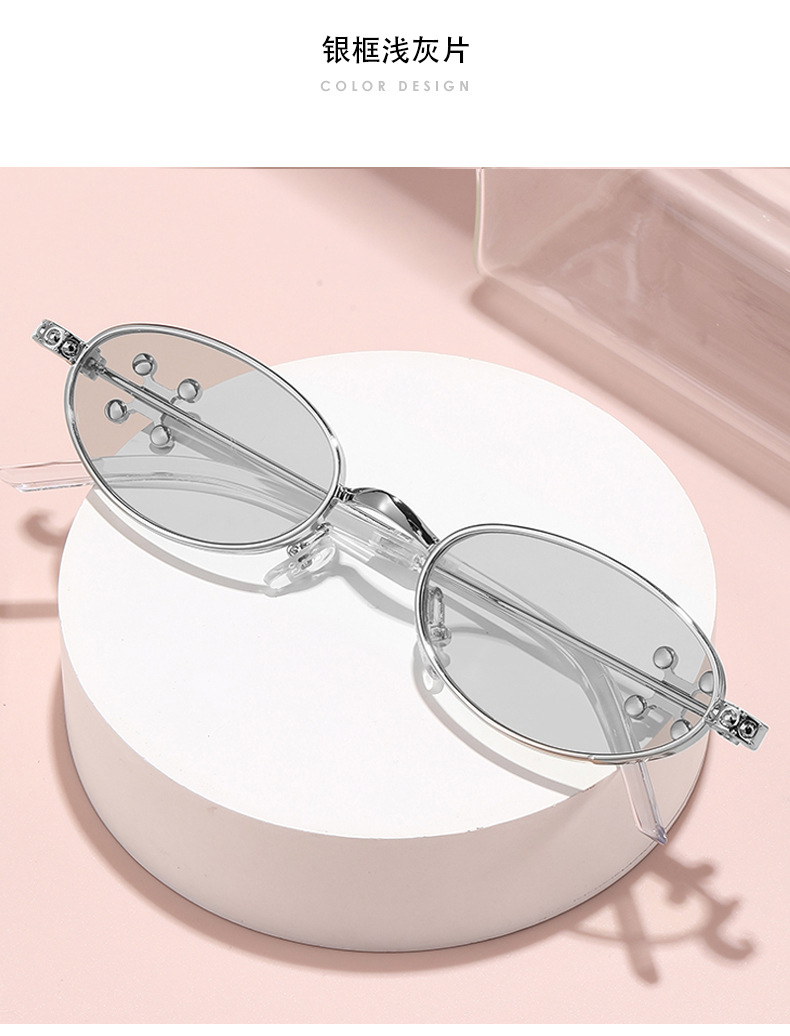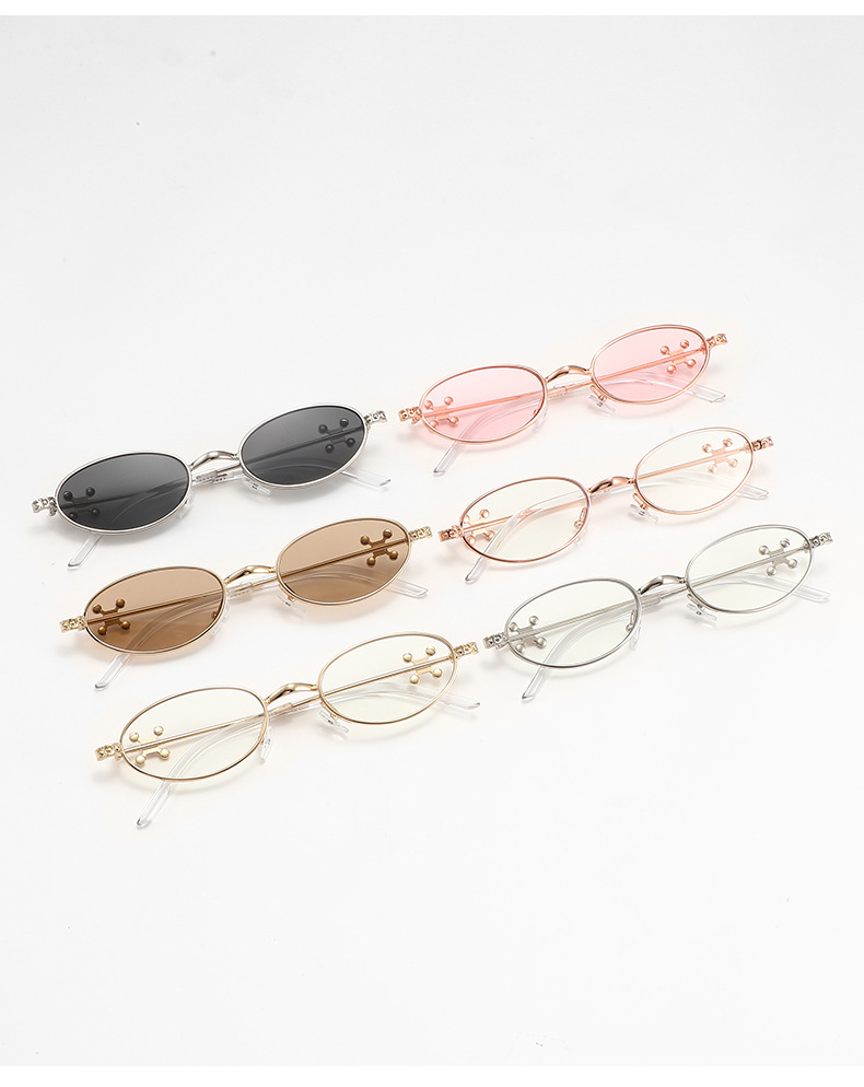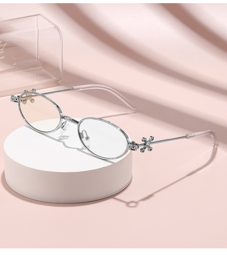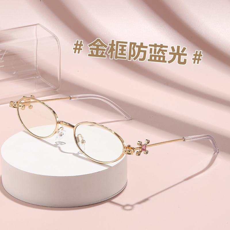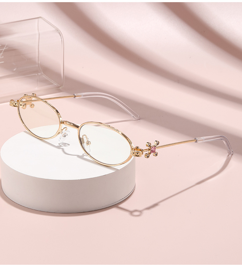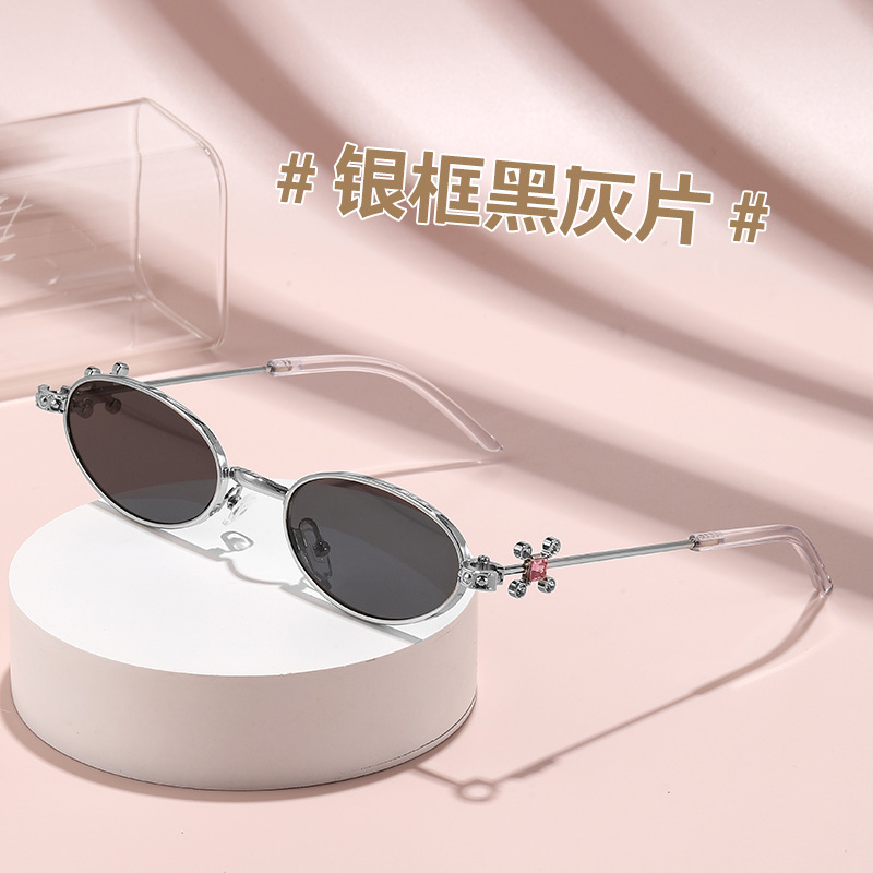Fashionable and versatile sunglasses with diamond legs, internet celebrity, same style sunglasses, oval frame anti blue light flat light, high-end sunglasses