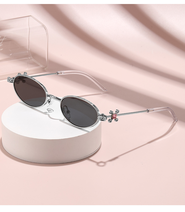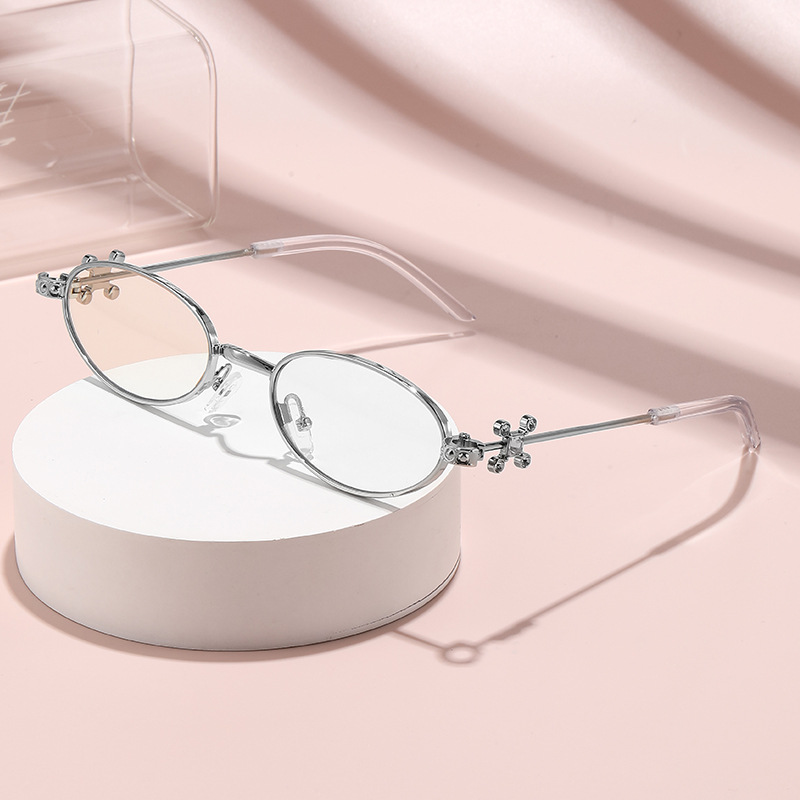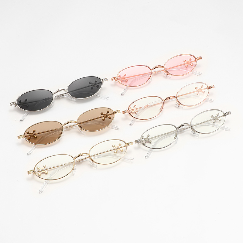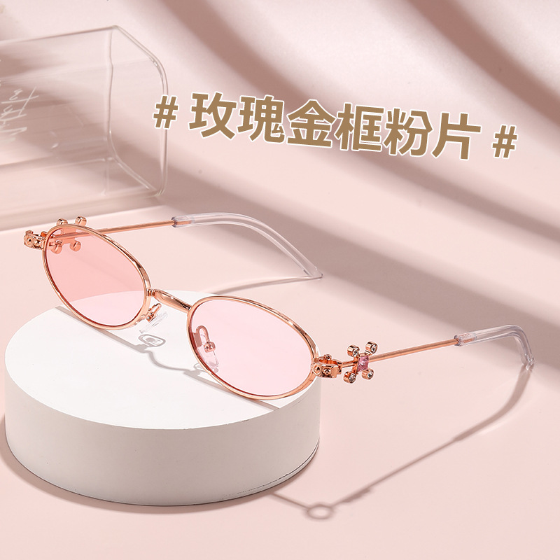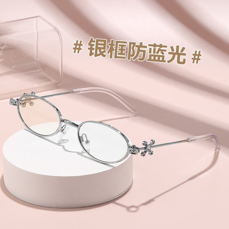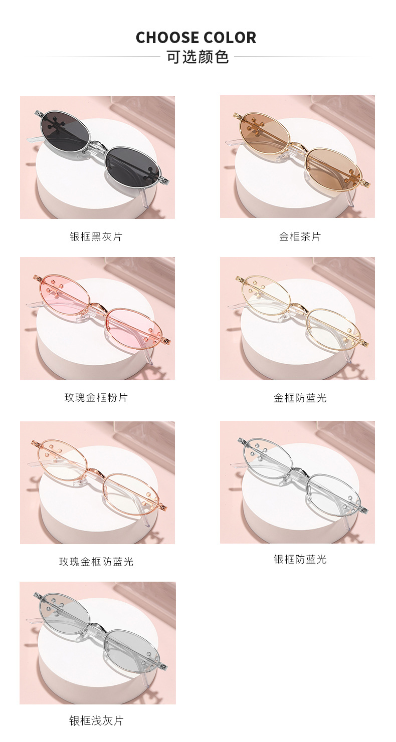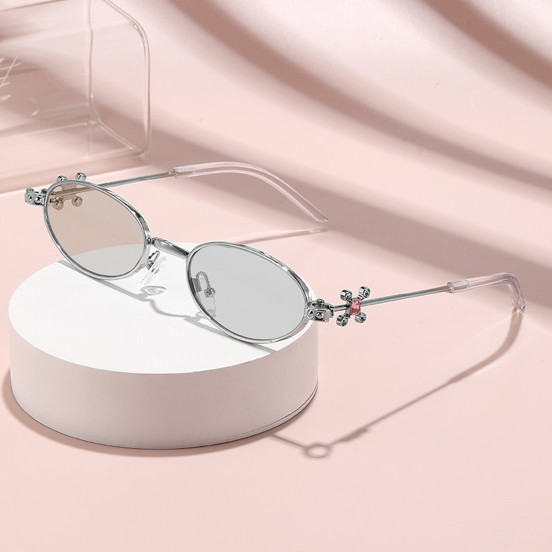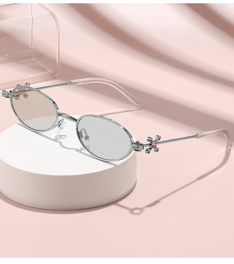 Fashionable and versatile sunglasses with diamond legs, internet celebrity, same style sunglasses, oval frame anti blue light flat light, high-end sunglasses