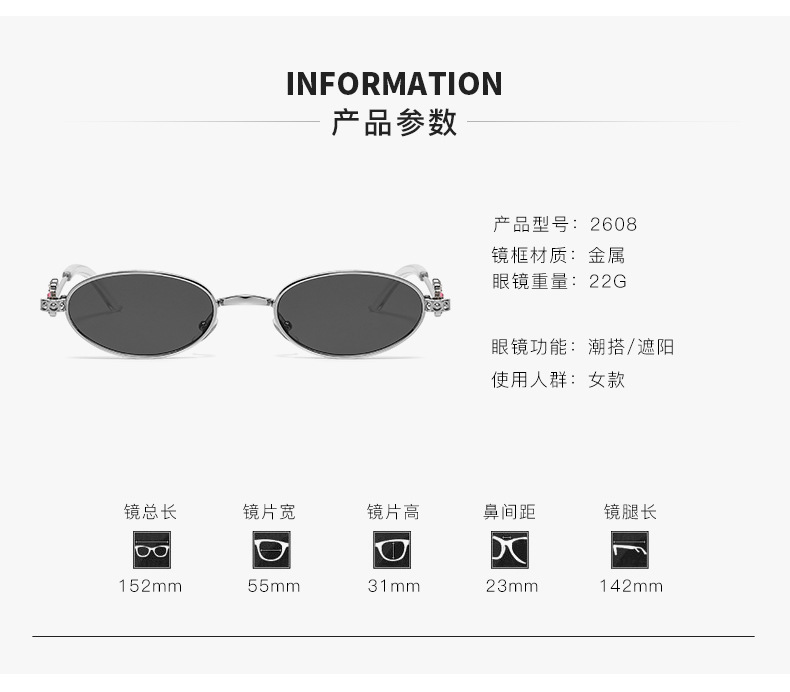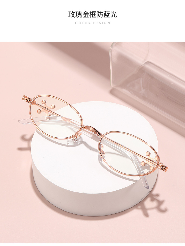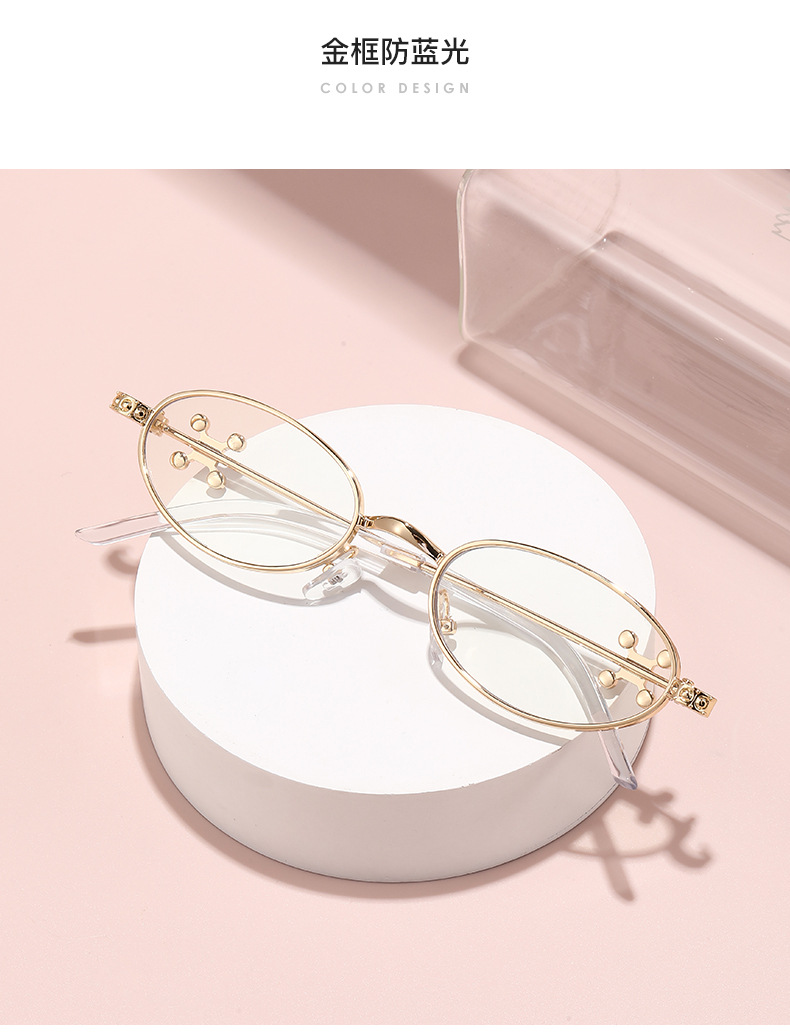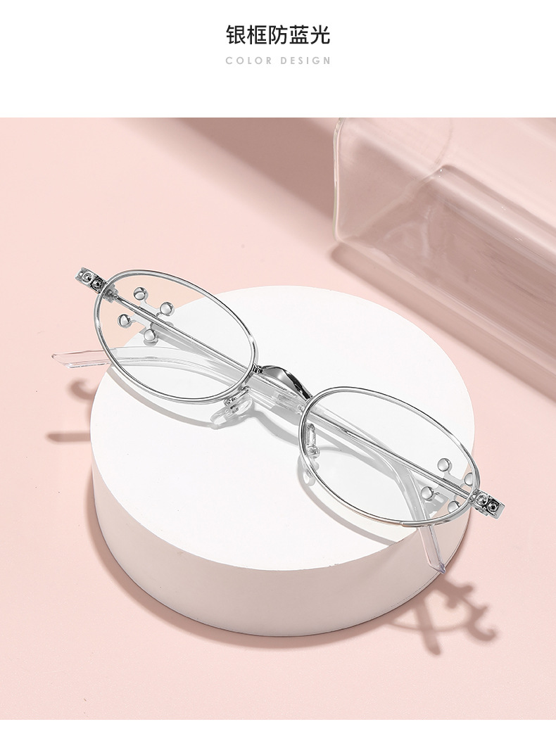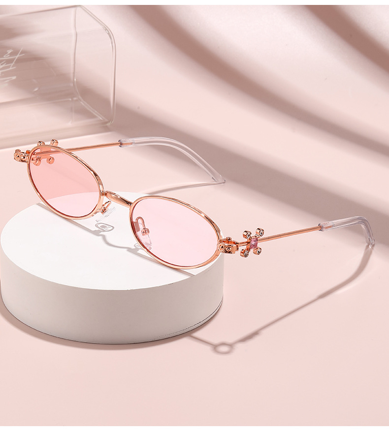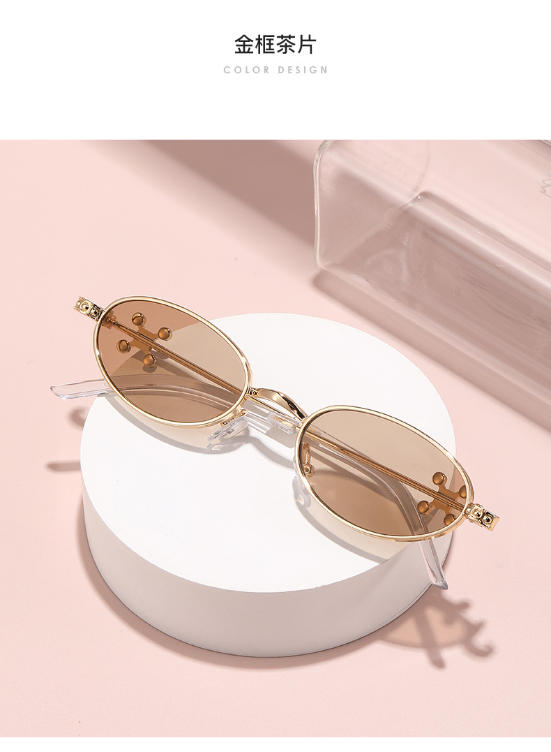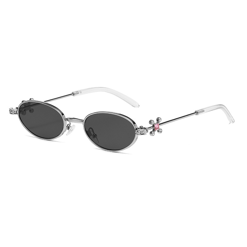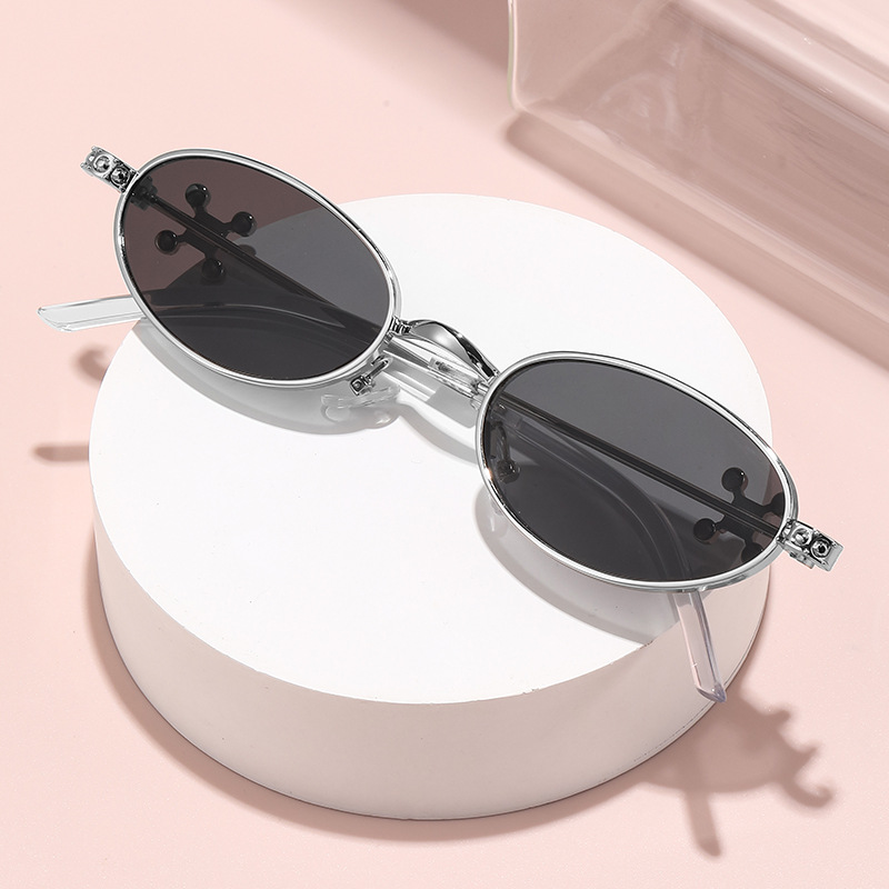 Fashionable and versatile sunglasses with diamond legs, internet celebrity, same style sunglasses, oval frame anti blue light flat light, high-end sunglasses