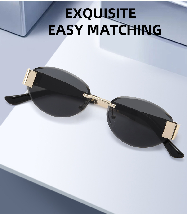 2025 new frameless cut edge metal sunglasses cross-border retro UV400 trendy sunglasses high-end fashion