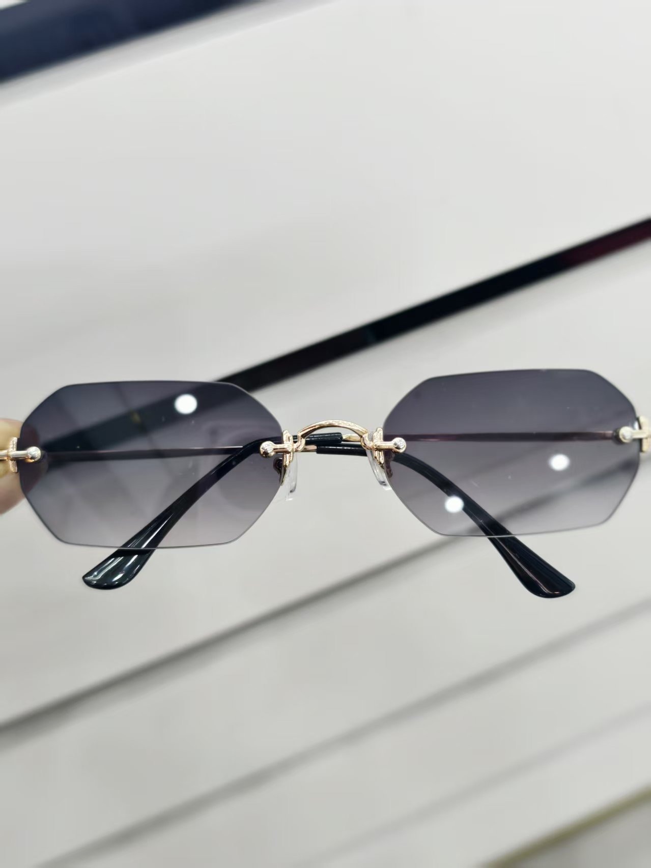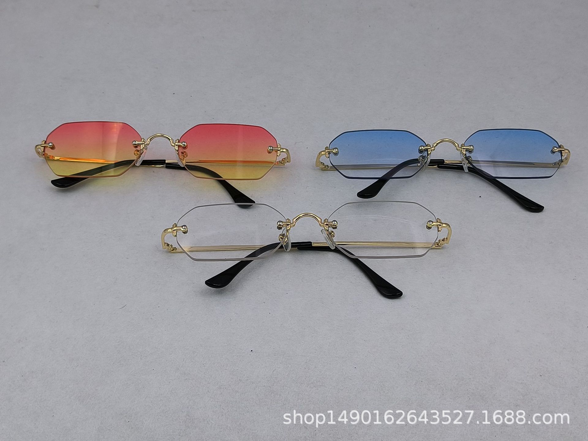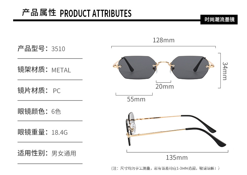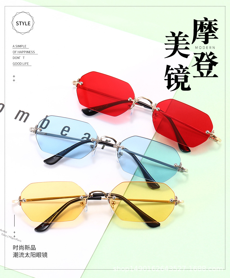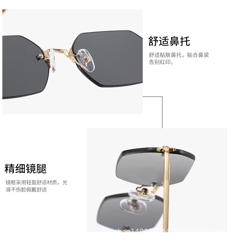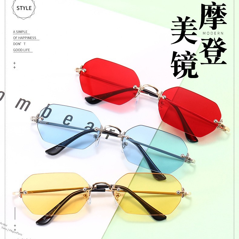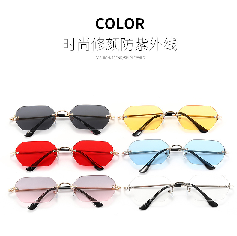 2023 New European and American Fashion Frameless Sunglasses International Station Hot Style Polygonal Edge Cutting Glasses Fashion 83510