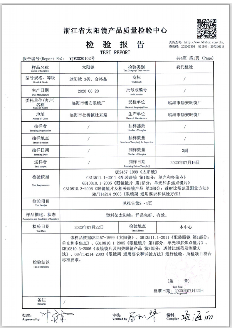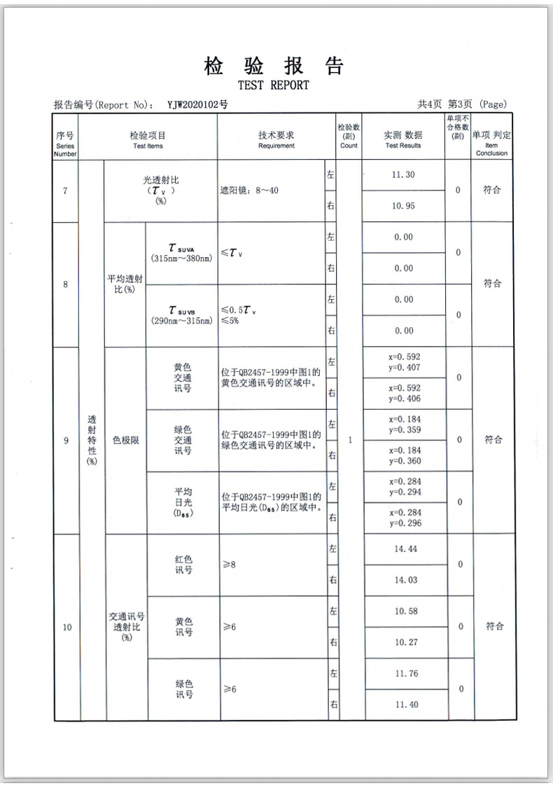 | Классификация коэффициентов пропускания | Класс 1 / Светлые солнцезащитные очки |