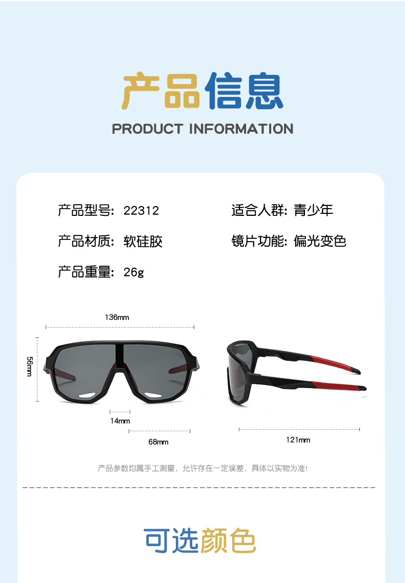 Youth sports glasses, cycling and running, children's sunglasses, polarized anti UV outdoor windproof glasses, 22312