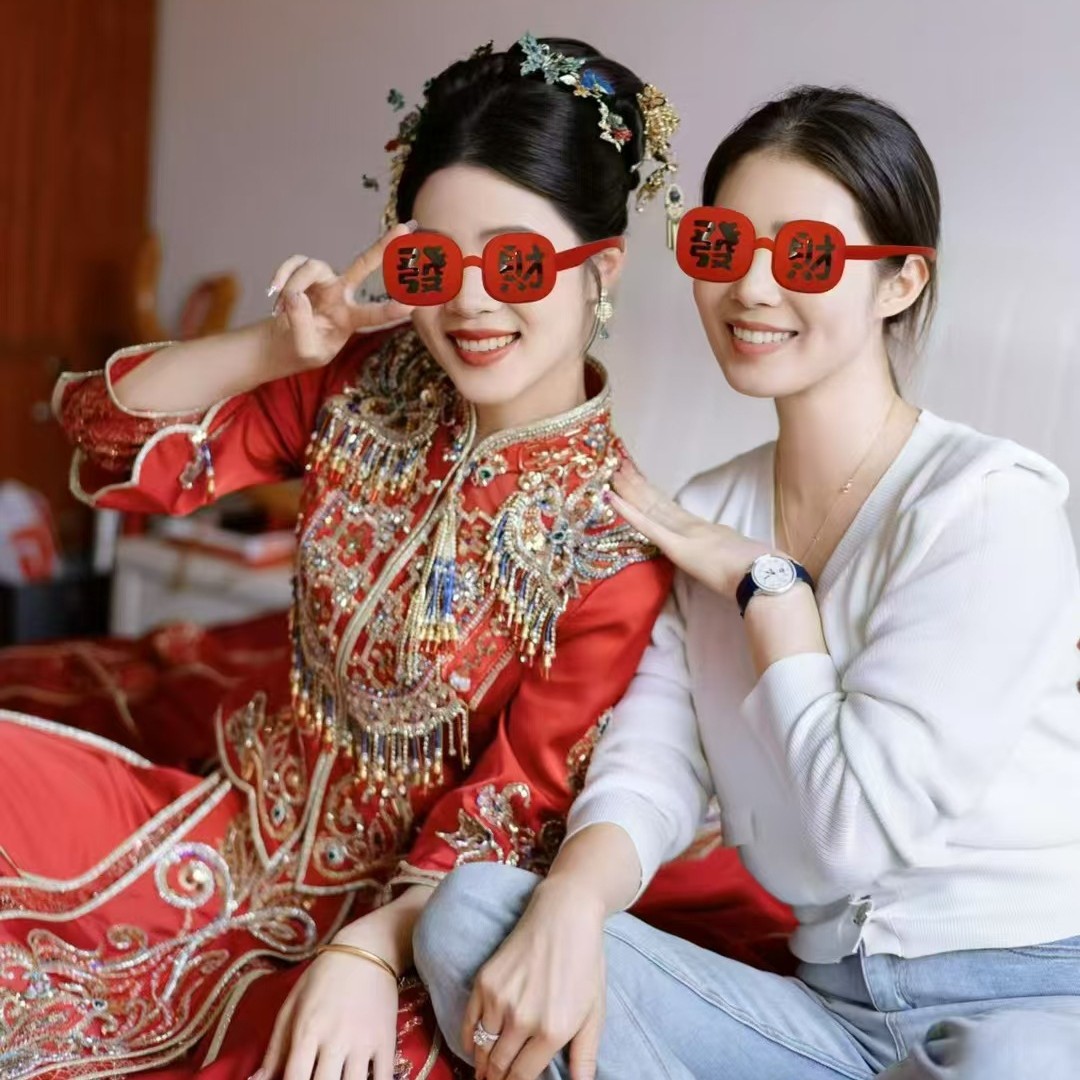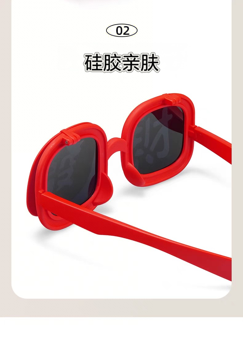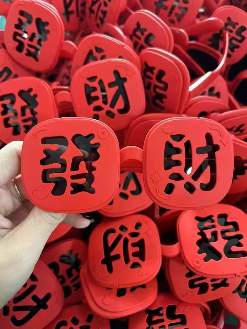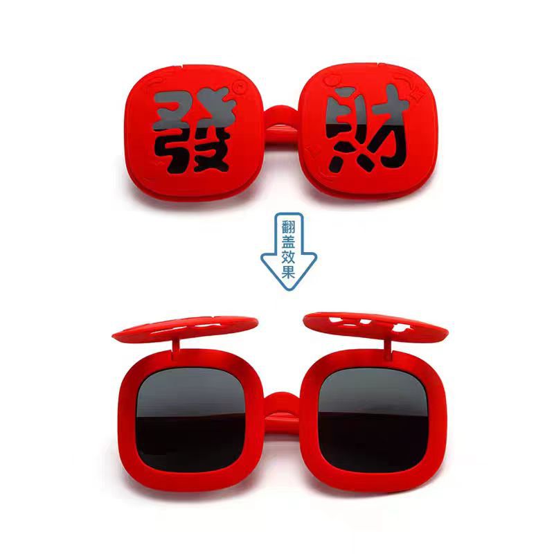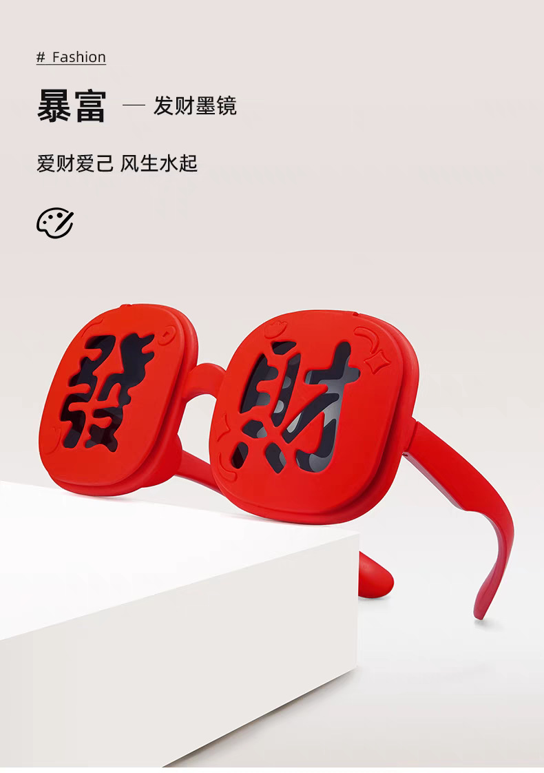 2025 New Year's parent-child style wealth glasses big red festive silicone soft frame sunglasses wealth funny photo glasses