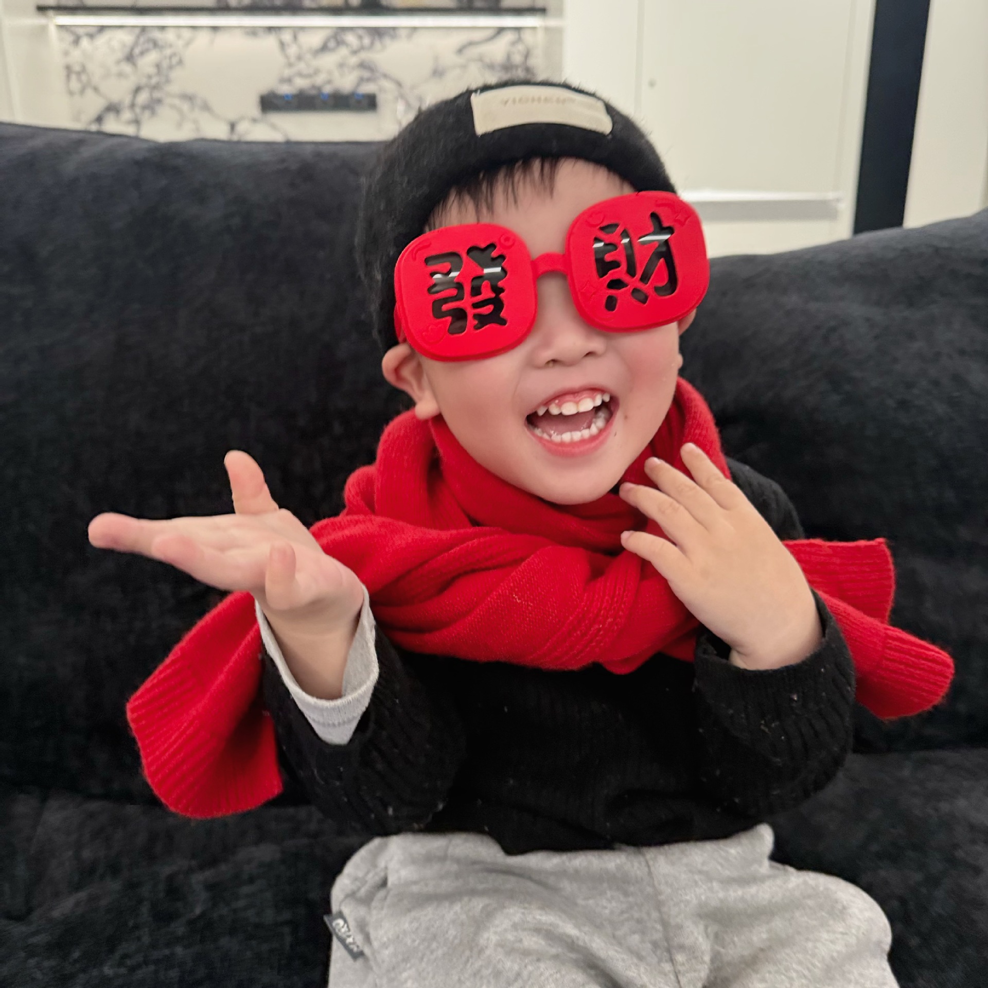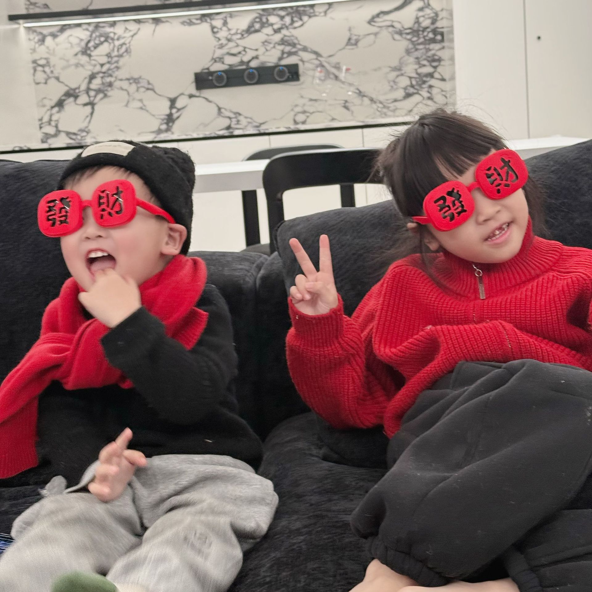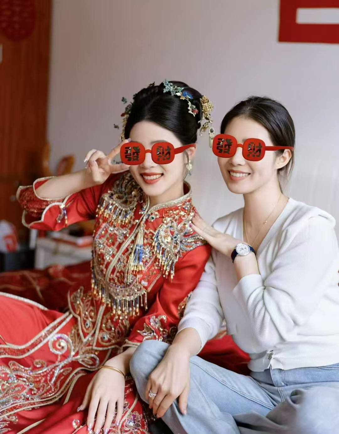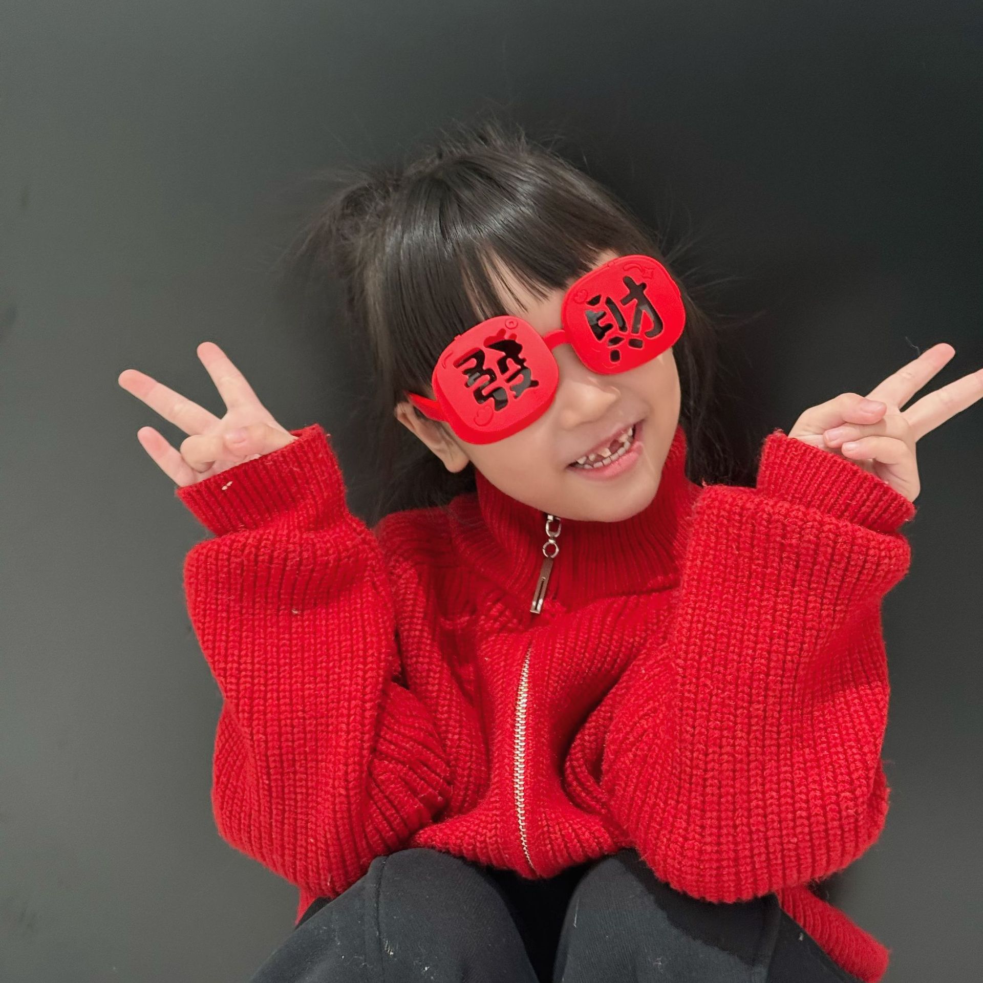 2025 New Year's parent-child style wealth glasses big red festive silicone soft frame sunglasses wealth funny photo glasses