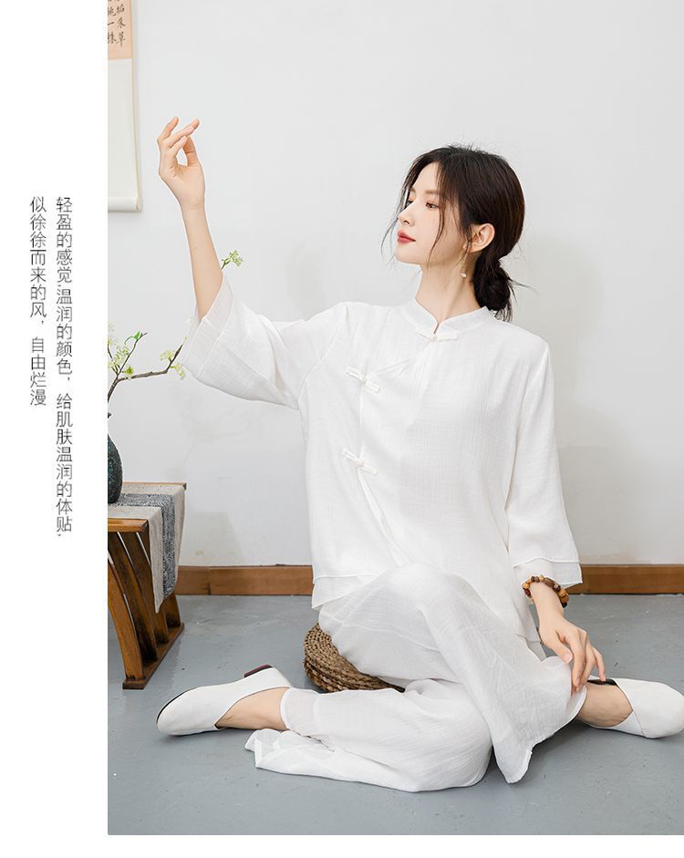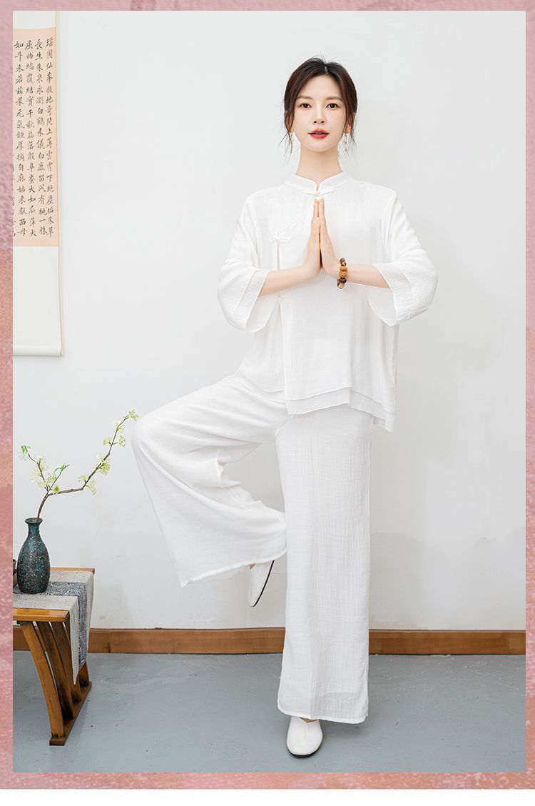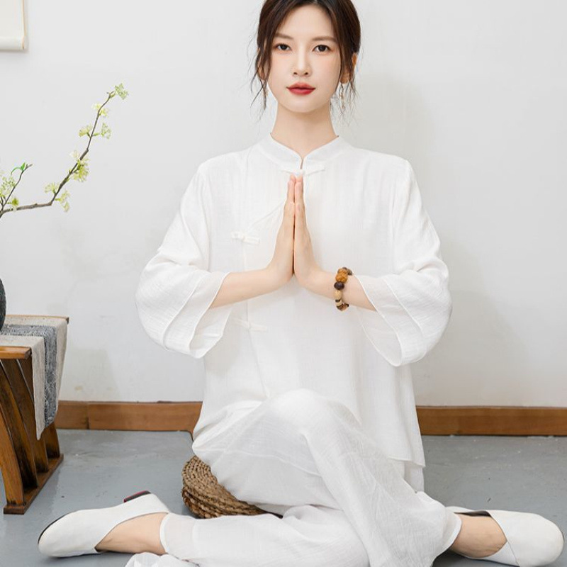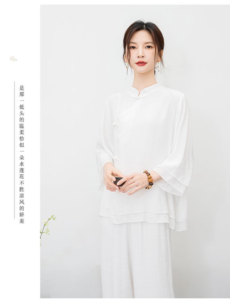 New ethnic style plus size retro Zen style improved meditation layman's suit set, new Chinese Buddhist Zen dance suit tea suit