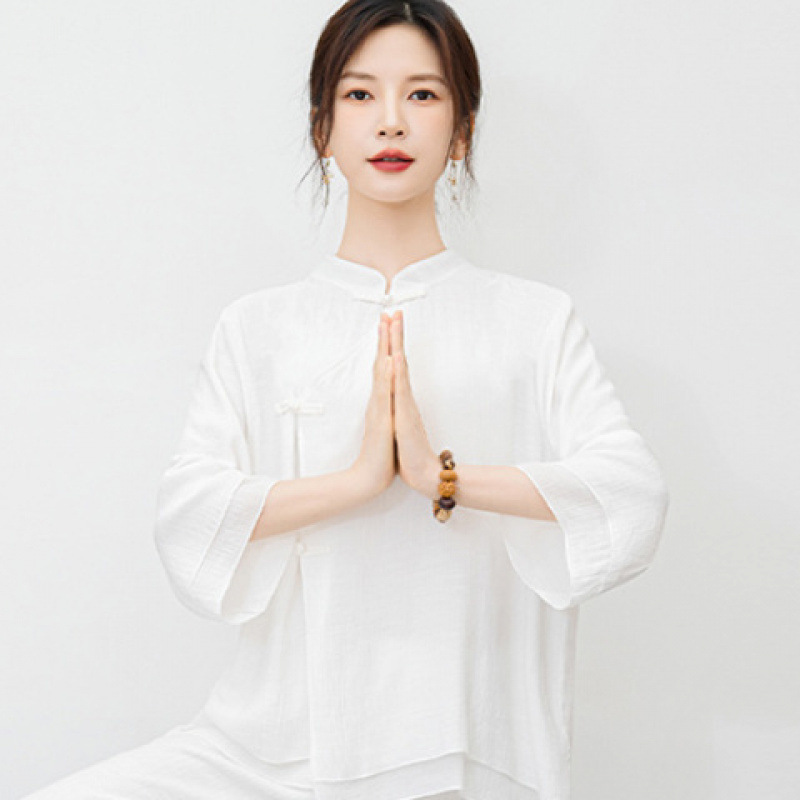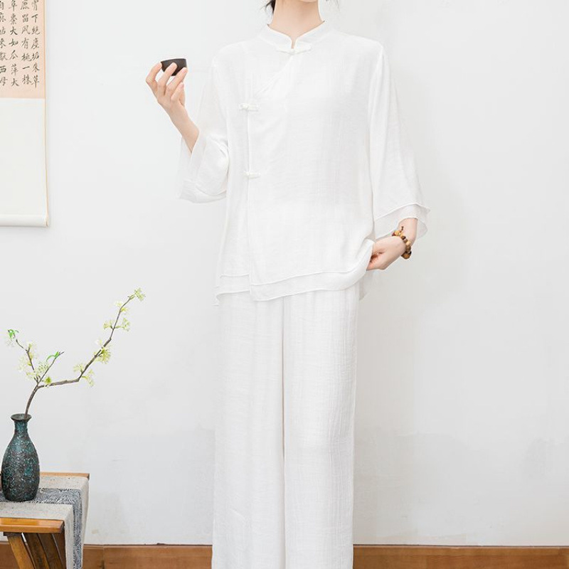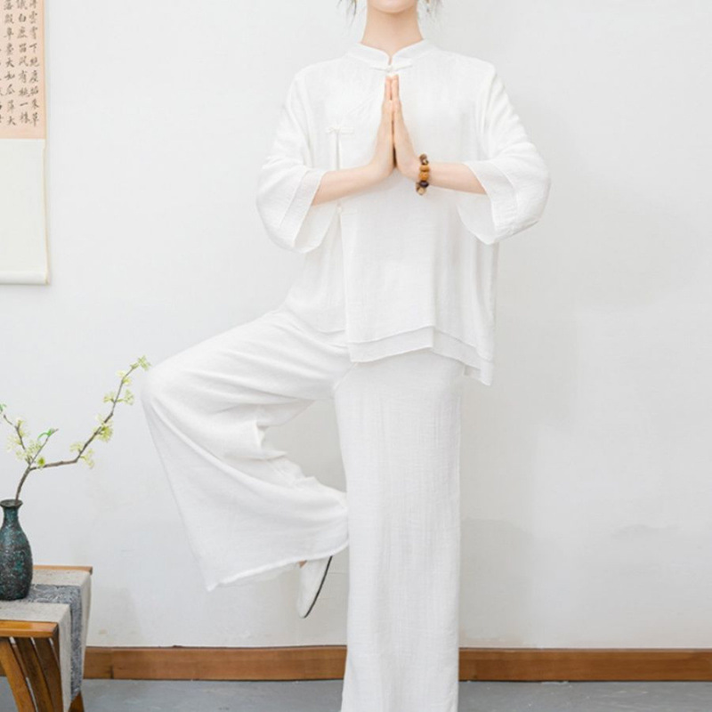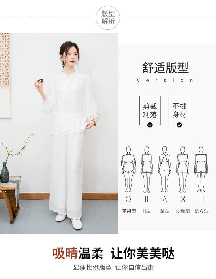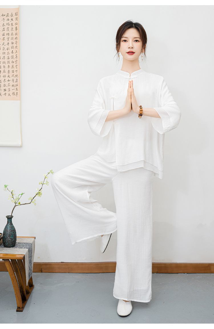 New ethnic style plus size retro Zen style improved meditation layman's suit set, new Chinese Buddhist Zen dance suit tea suit