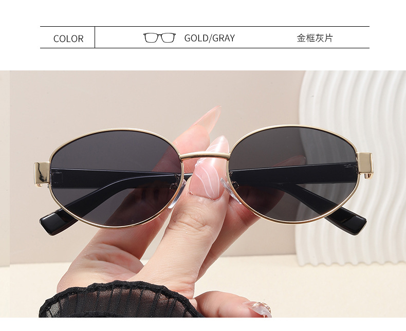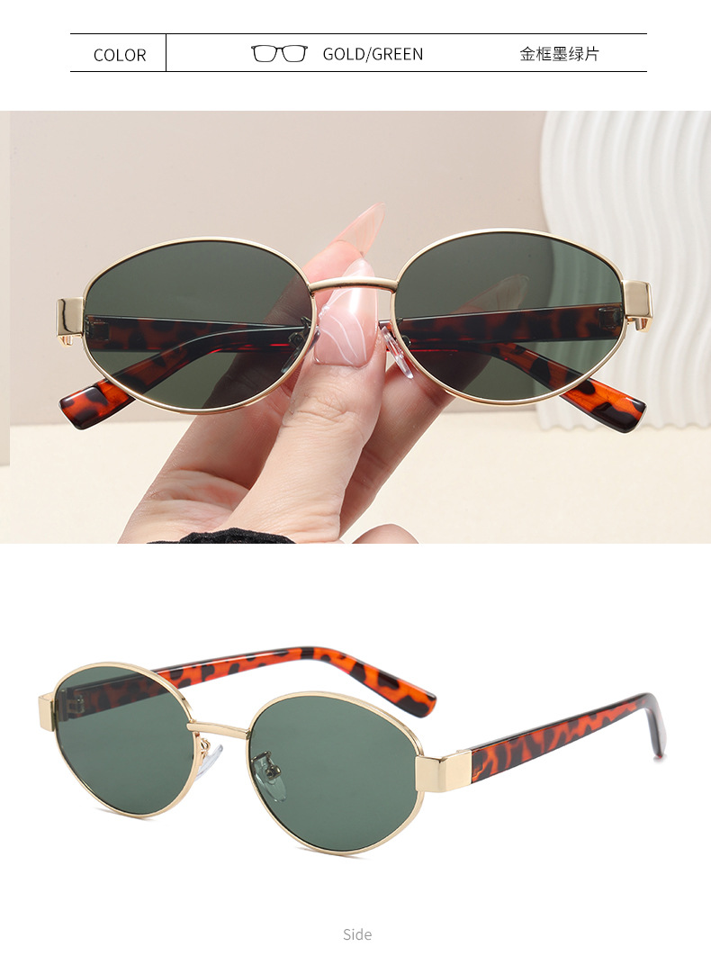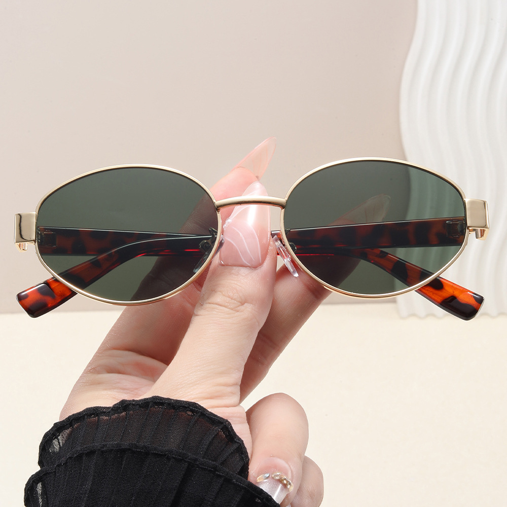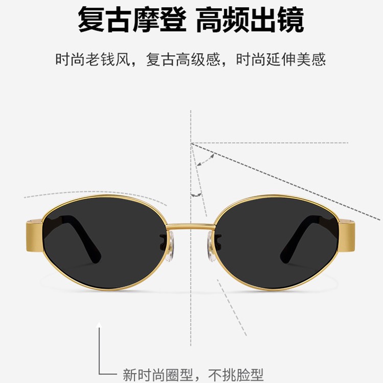 Retro Money Style Metal Oval Sunglasses for Women, Sunscreen, High Quality, Small Frame, Hong Kong Style, Concave Shaped Sunglasses