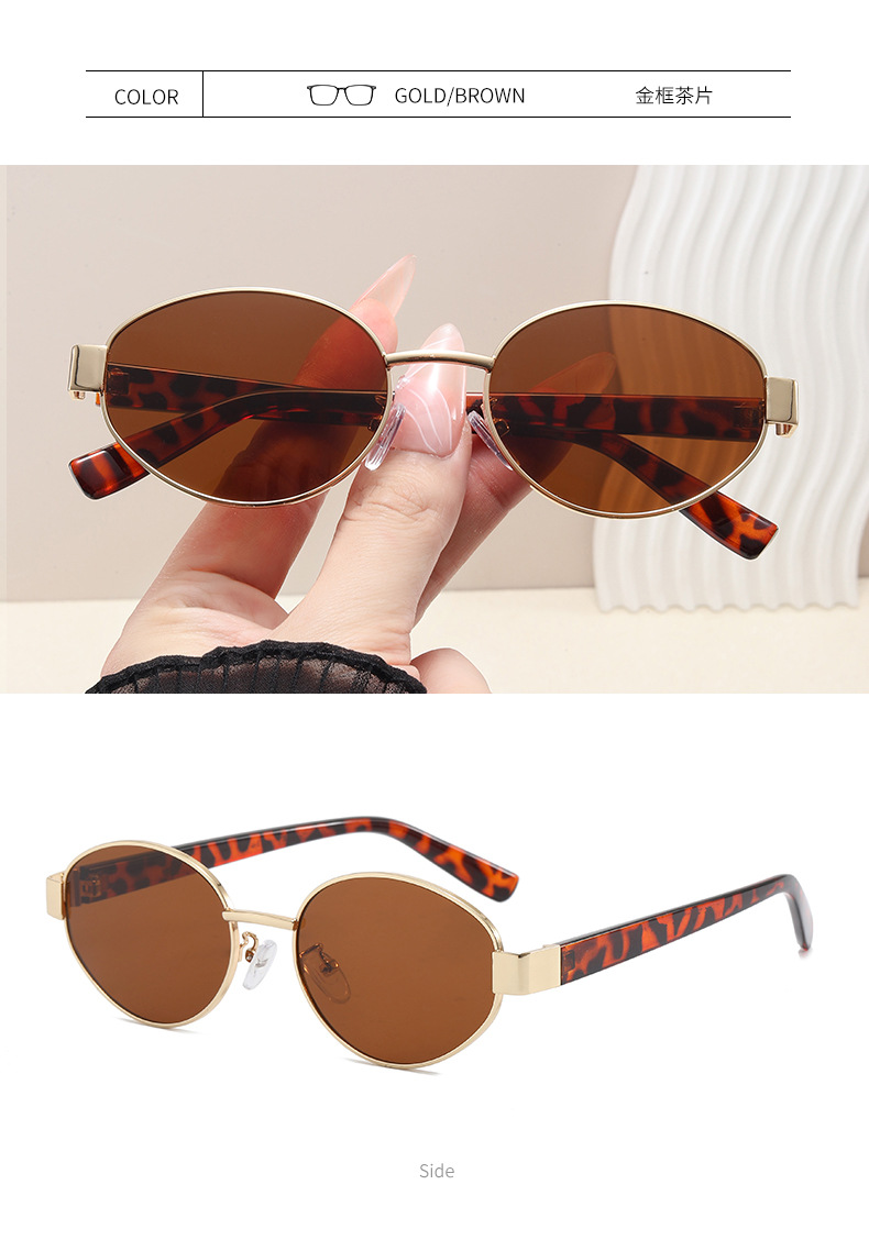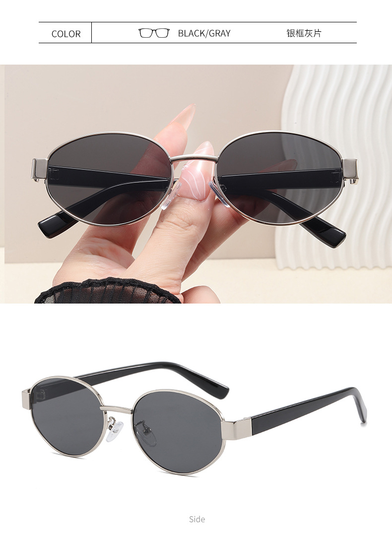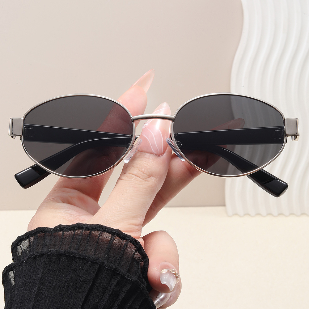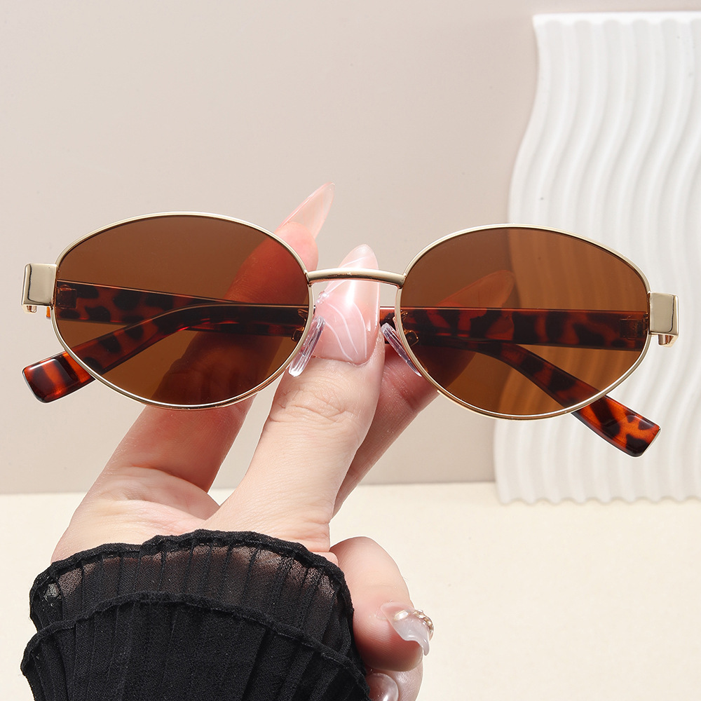 Retro Money Style Metal Oval Sunglasses for Women, Sunscreen, High Quality, Small Frame, Hong Kong Style, Concave Shaped Sunglasses