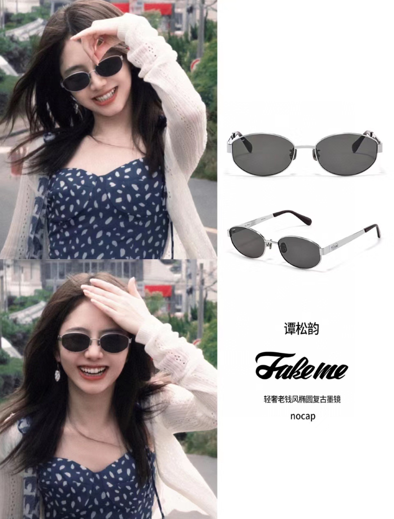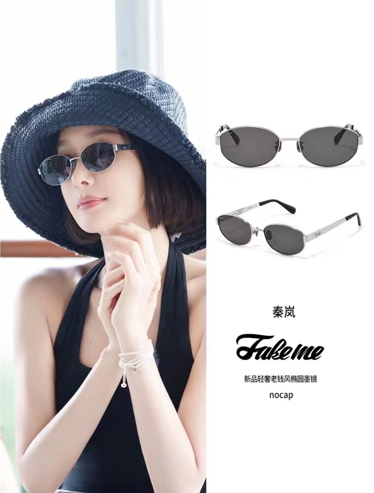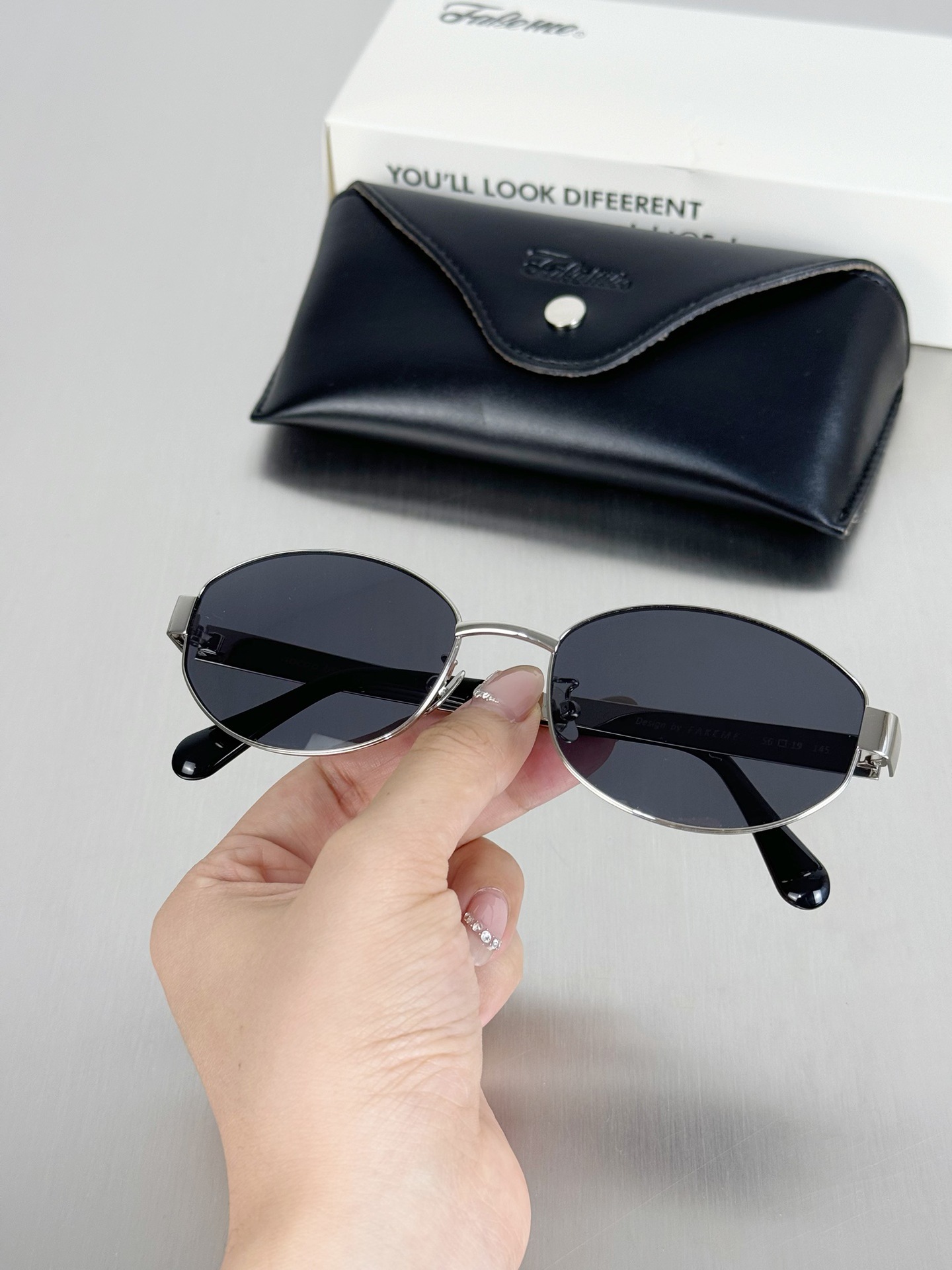 Fakeme25 new oval metal silver frame sunglasses for sun protection and UV protection, with a vintage look on the face