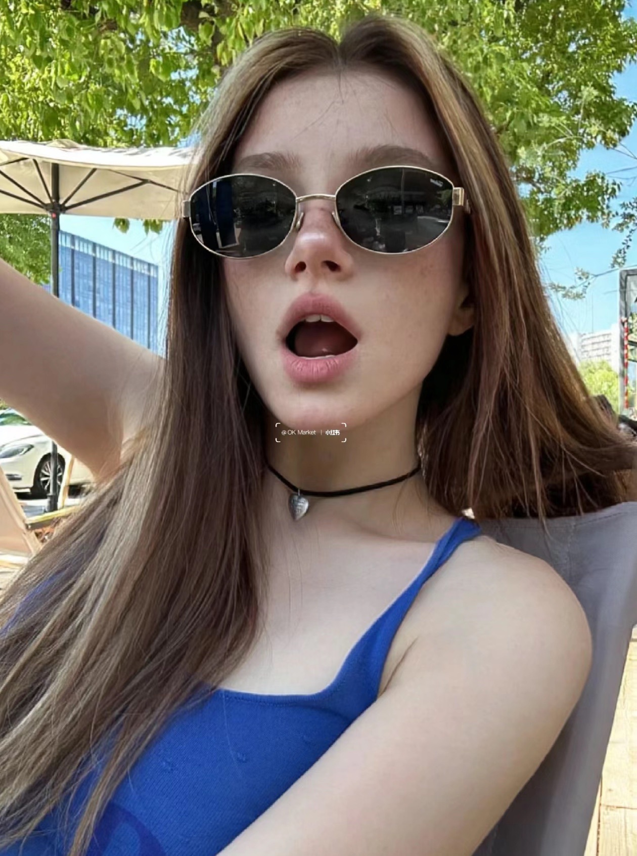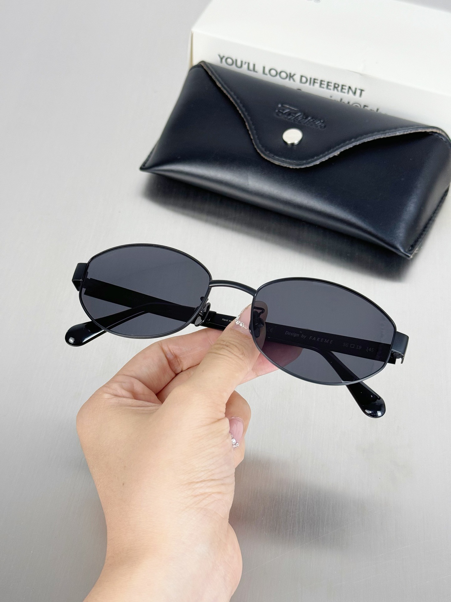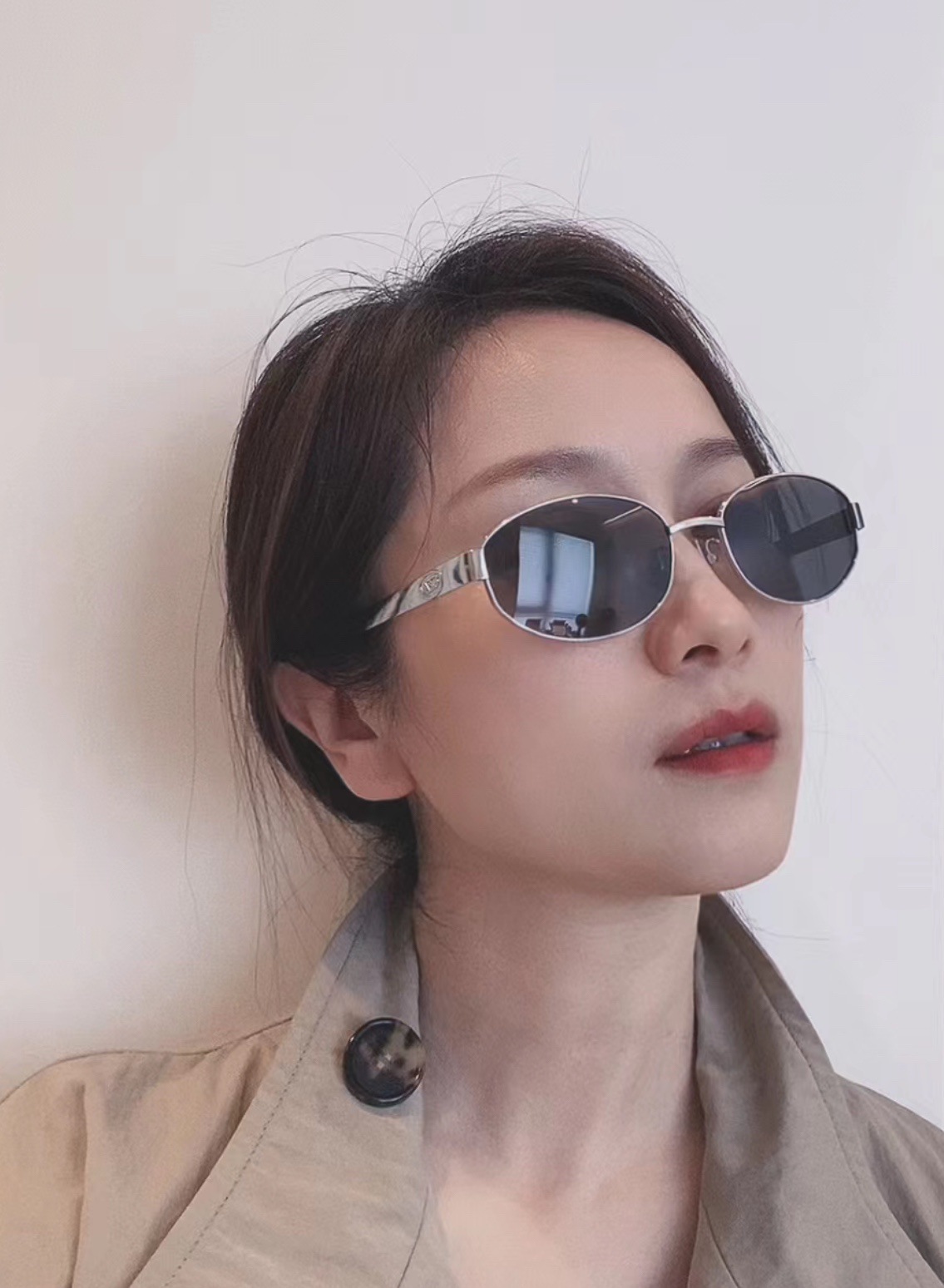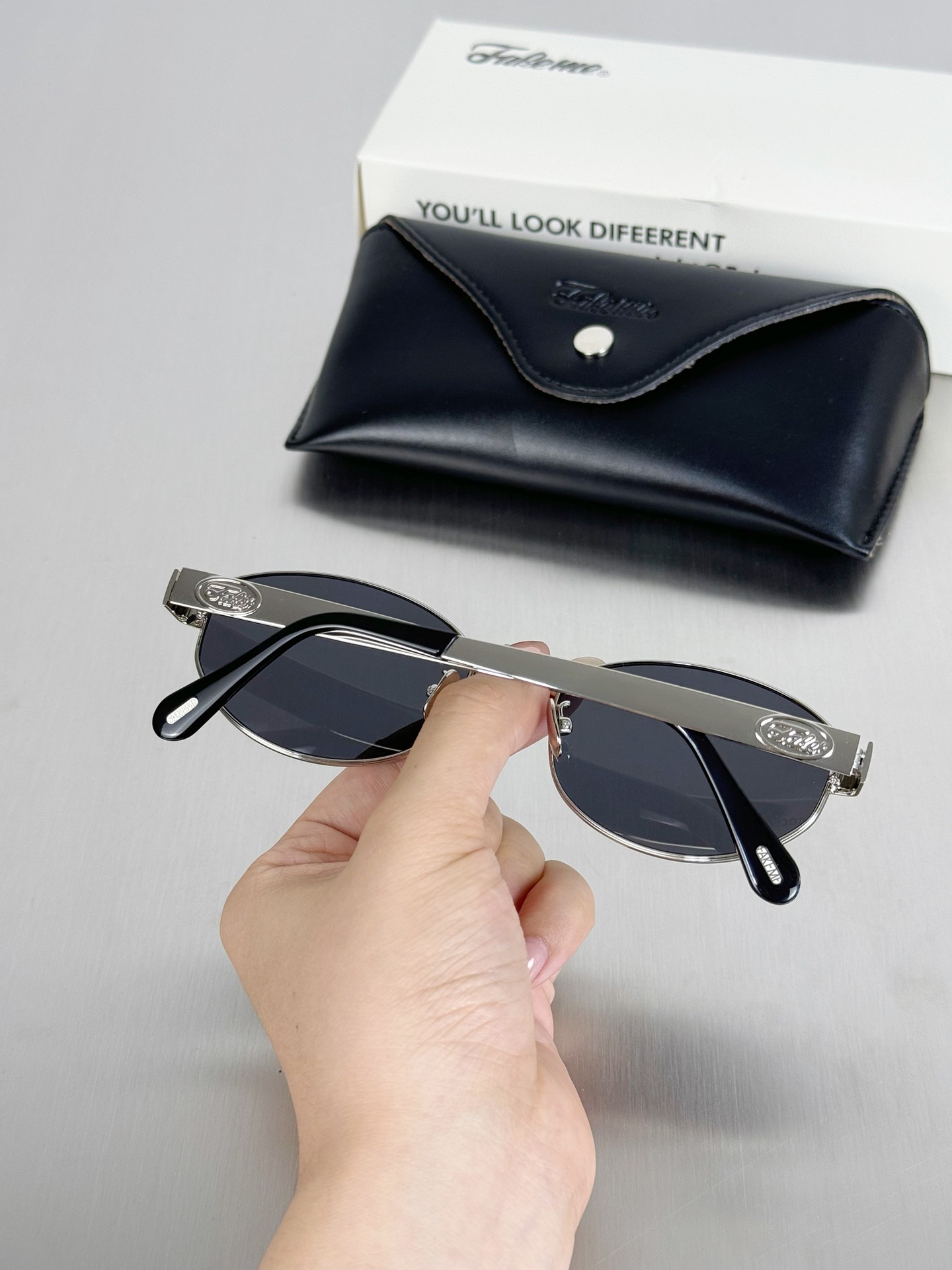 Fakeme25 new oval metal silver frame sunglasses for sun protection and UV protection, with a vintage look on the face