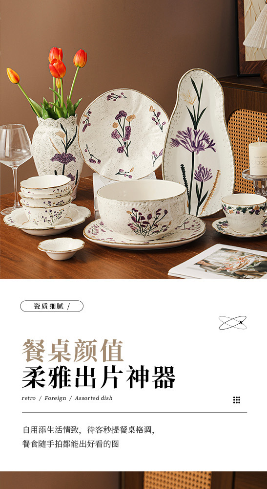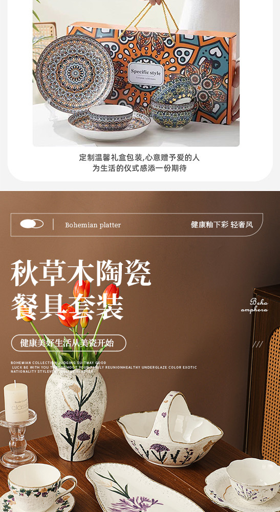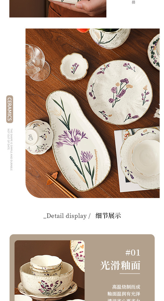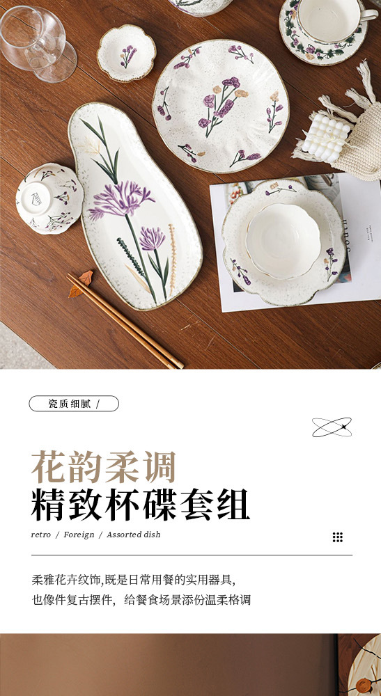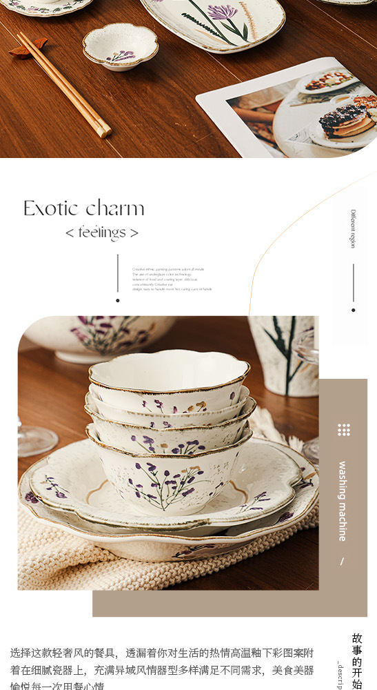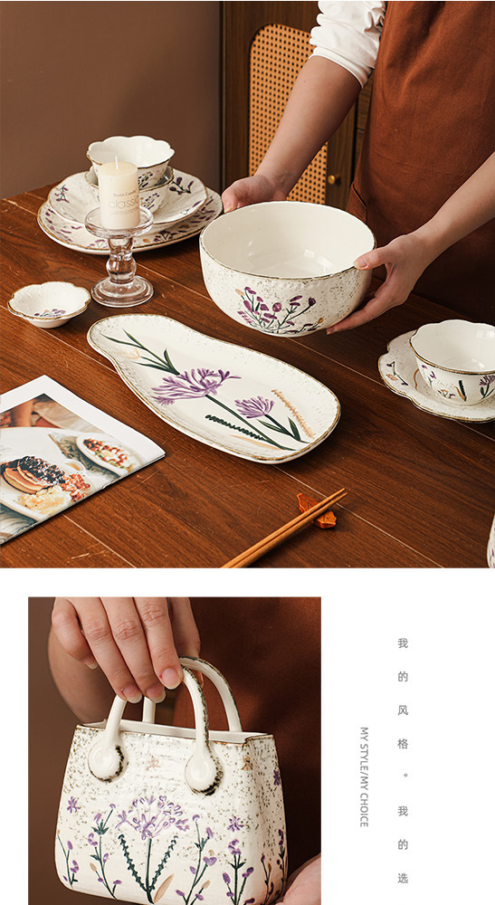 Flower tableware, bowls and plates, ceramic bowl and plate set gift box, housewarming, new home, wedding gift, household dish cup, soup bowl set