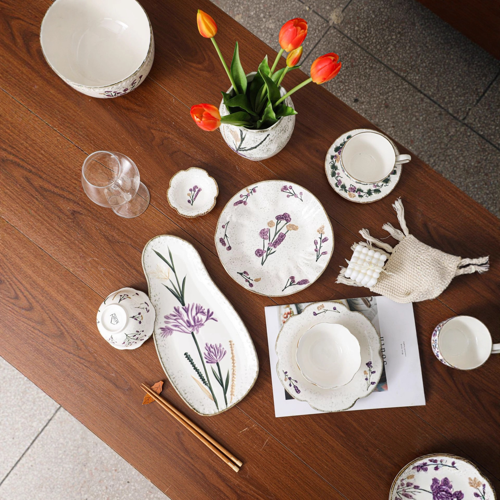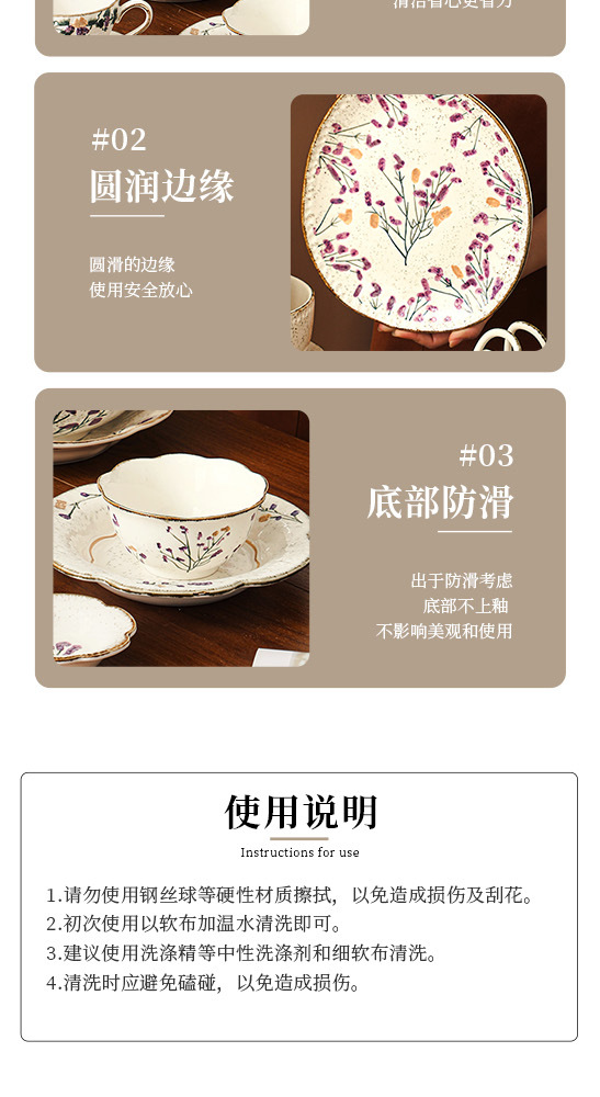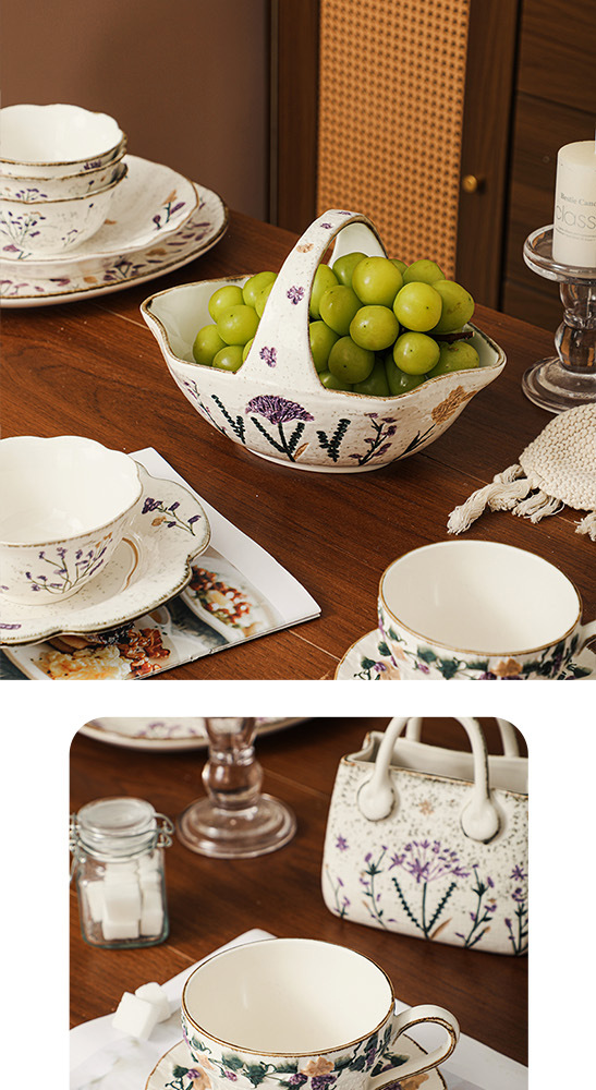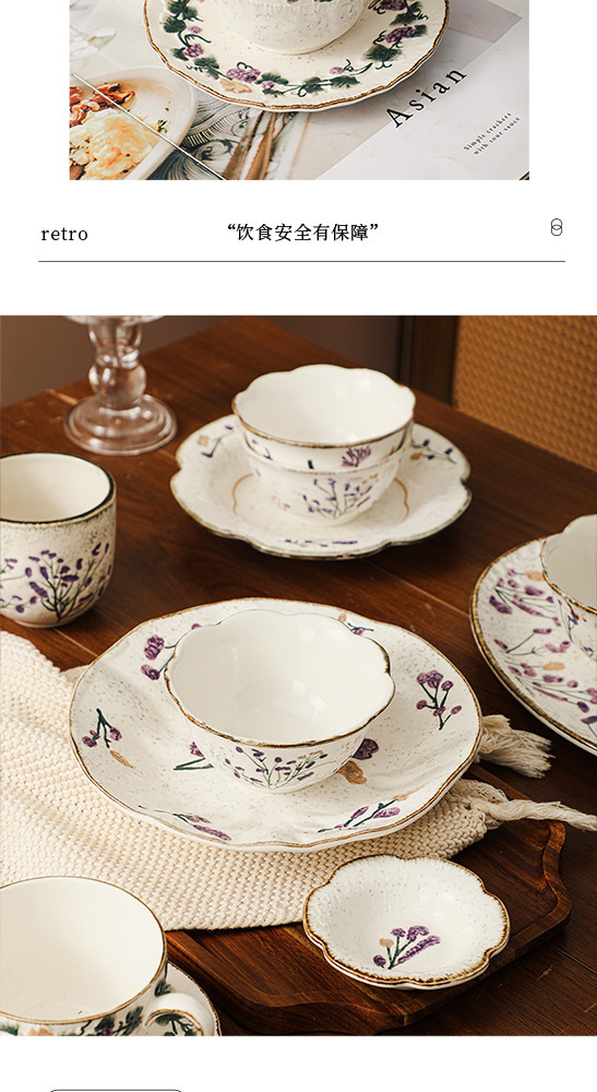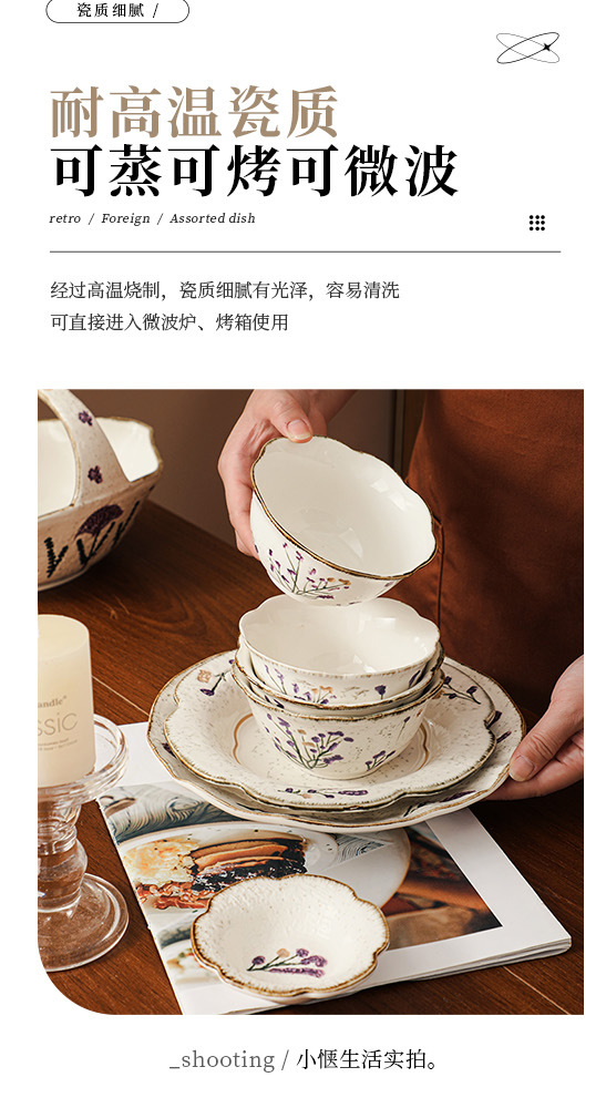 Flower tableware, bowls and plates, ceramic bowl and plate set gift box, housewarming, new home, wedding gift, household dish cup, soup bowl set