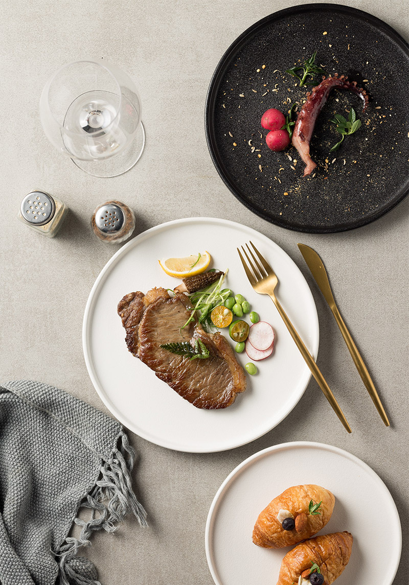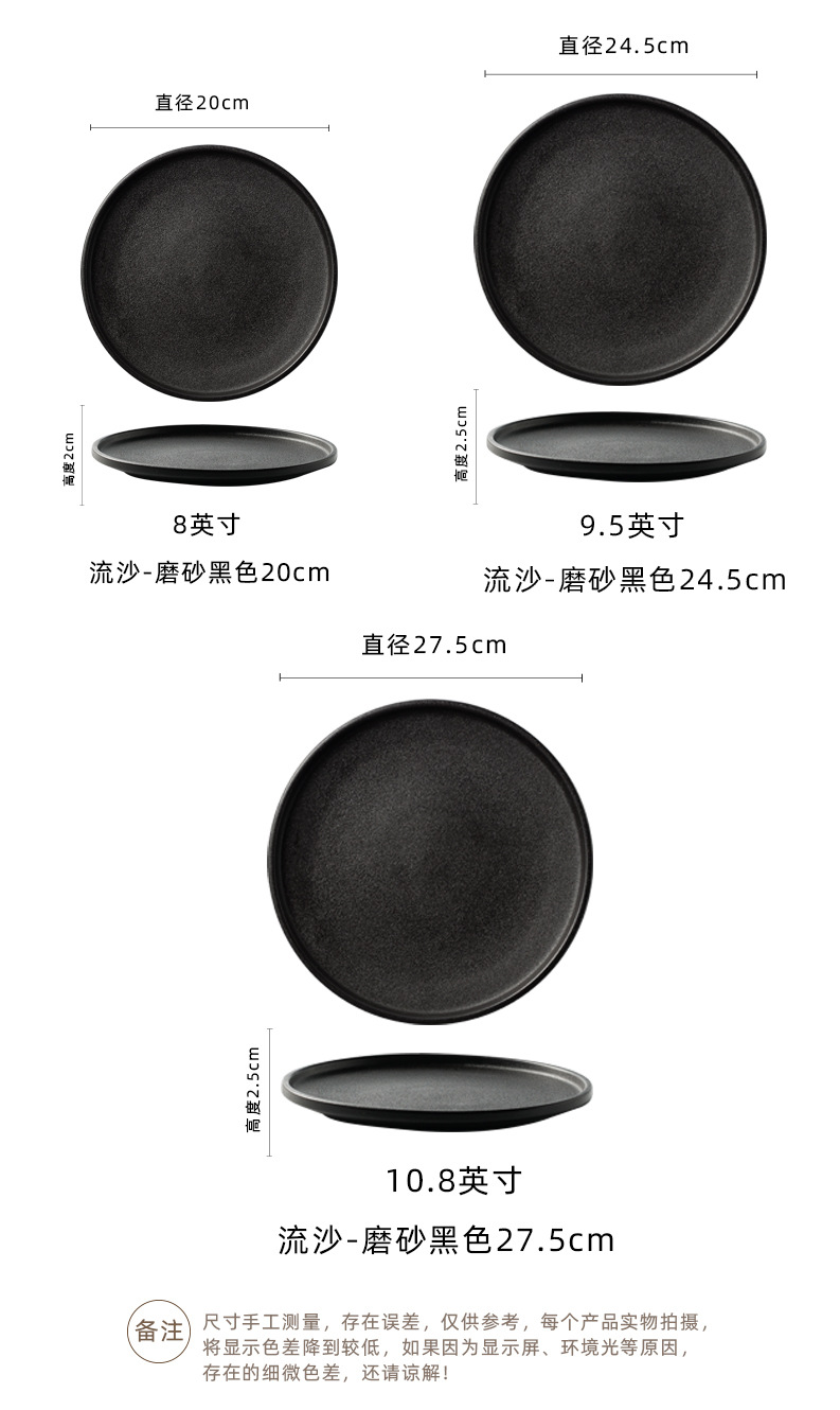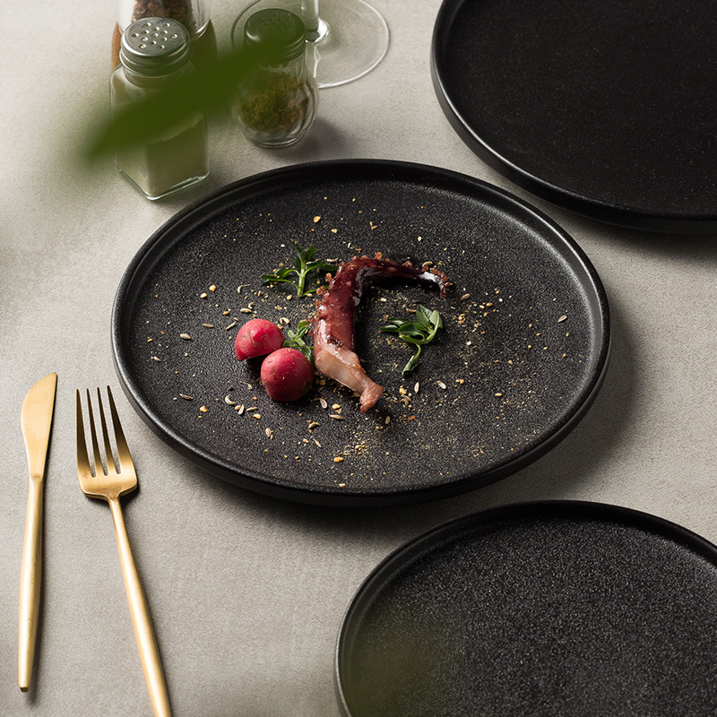 Black Plate, Beef Plate, Western Cuisine Plate, High Beauty Household Black Matte Flat Plate, Western Cuisine Plate, Creative Meal Plate