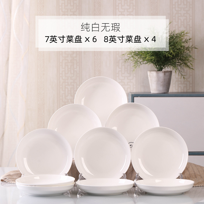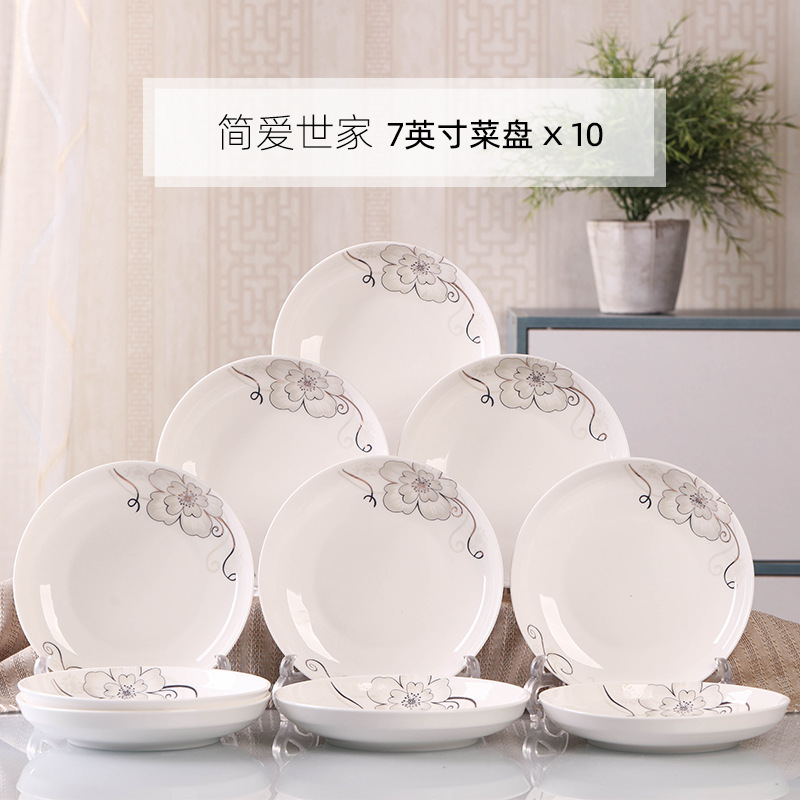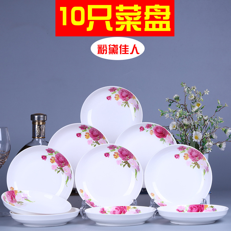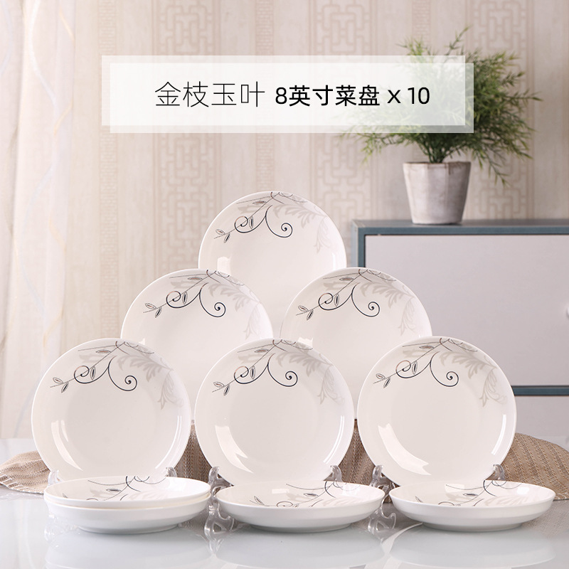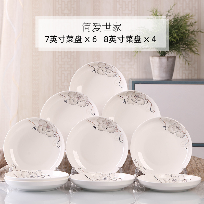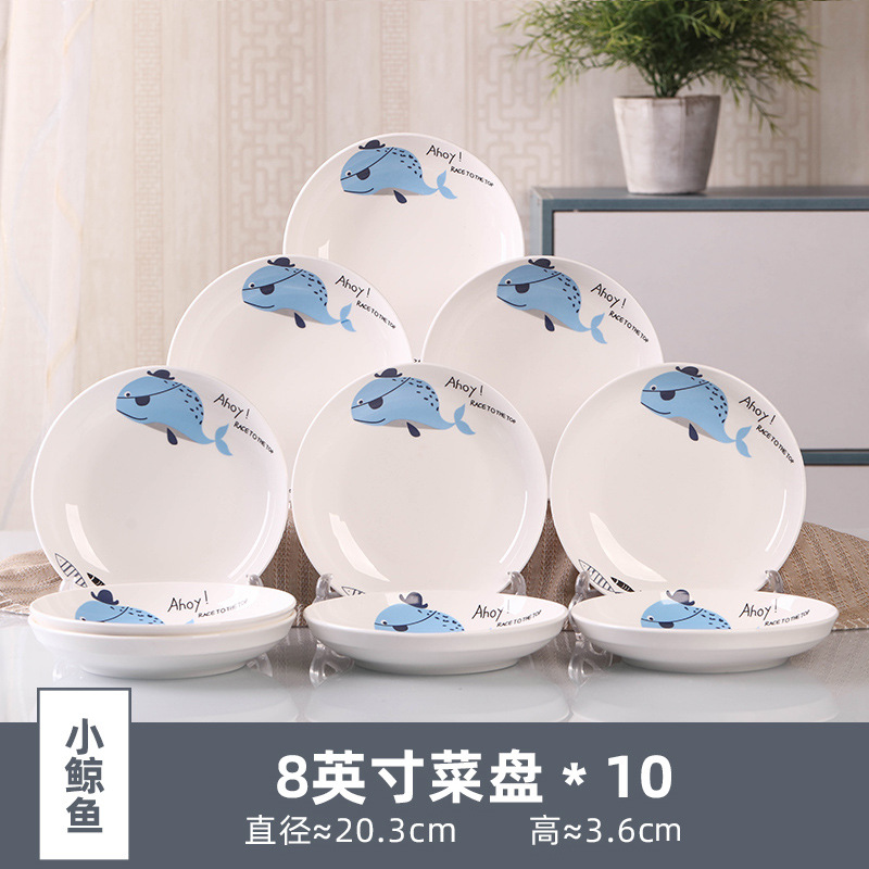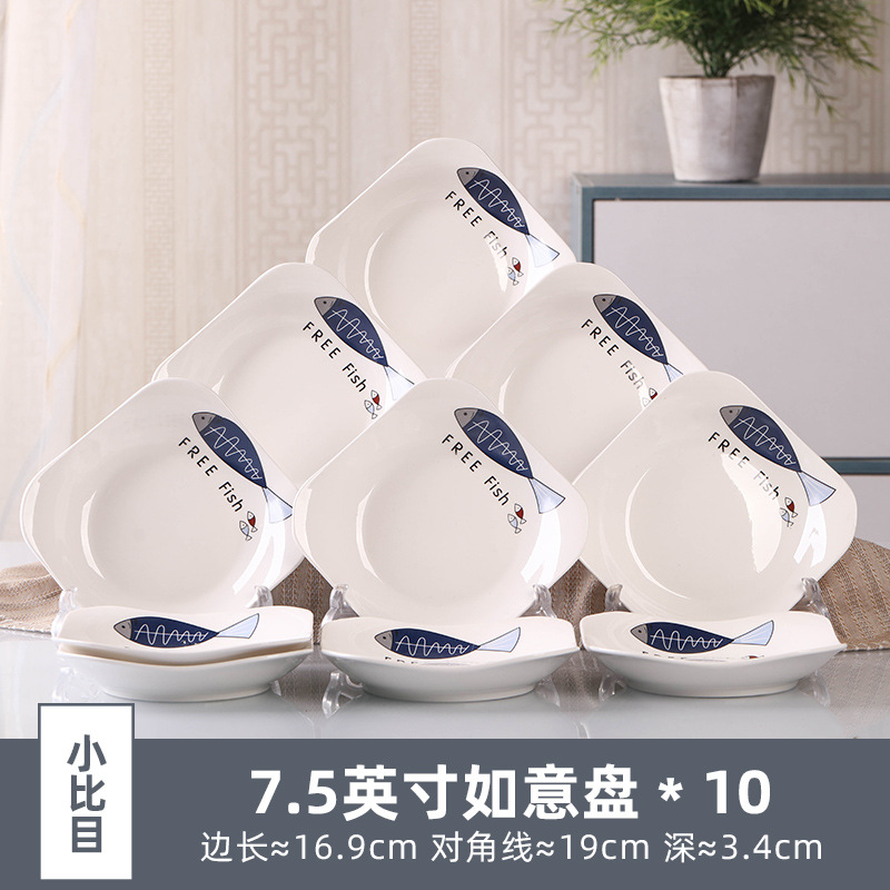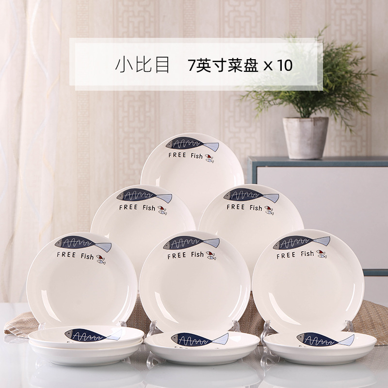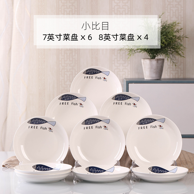 Household 10 dish ceramic tableware circular combination simple plate set new fish plate creative dining plate