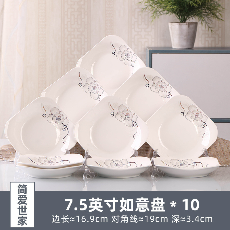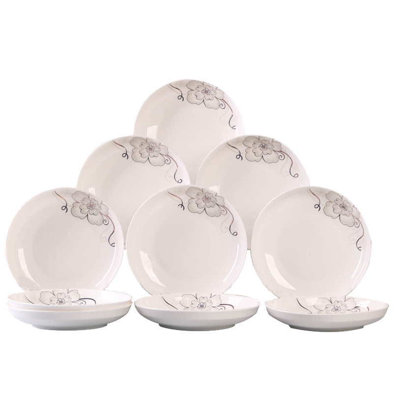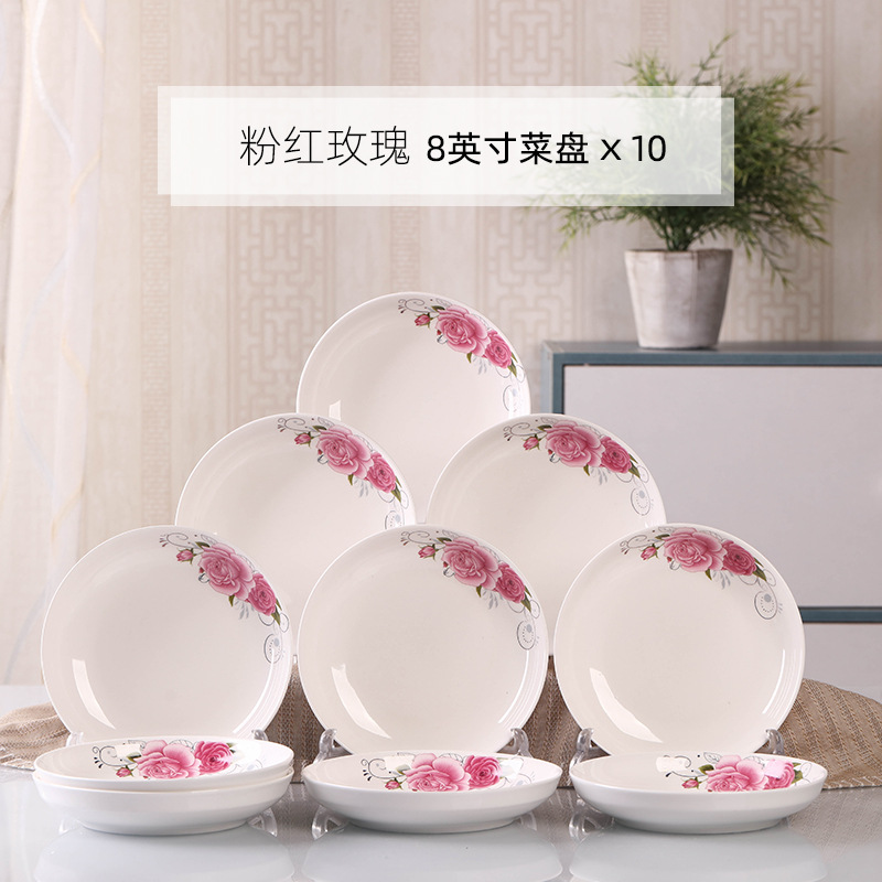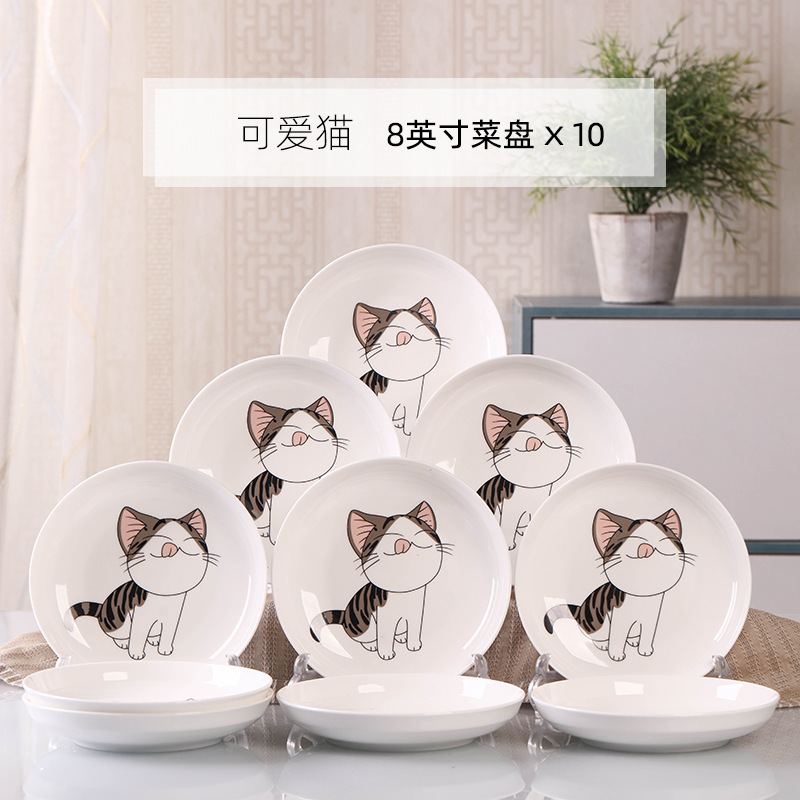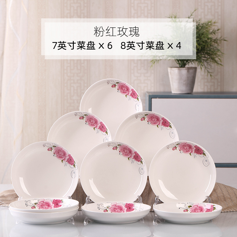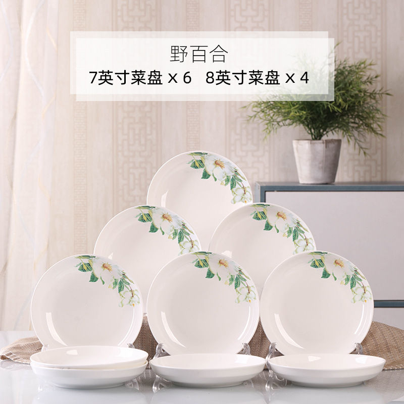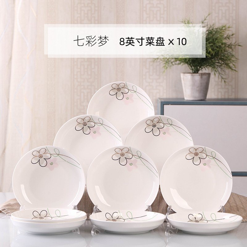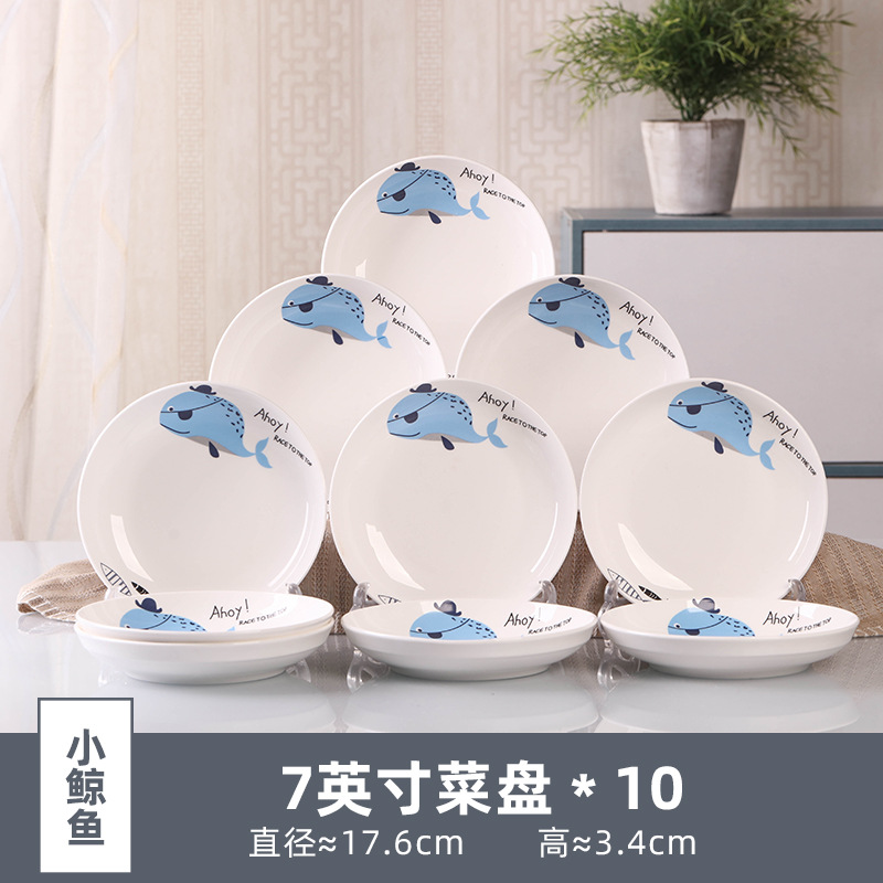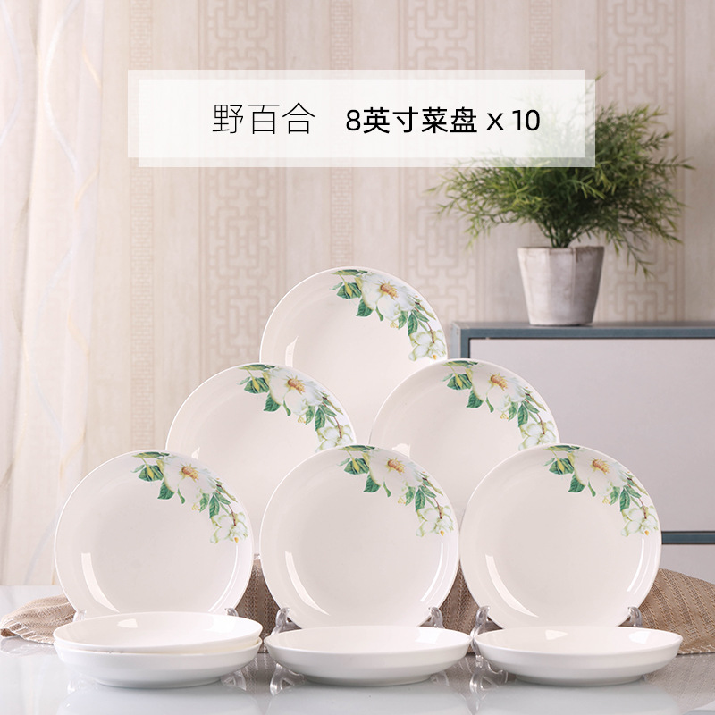 Household 10 dish ceramic tableware circular combination simple plate set new fish plate creative dining plate