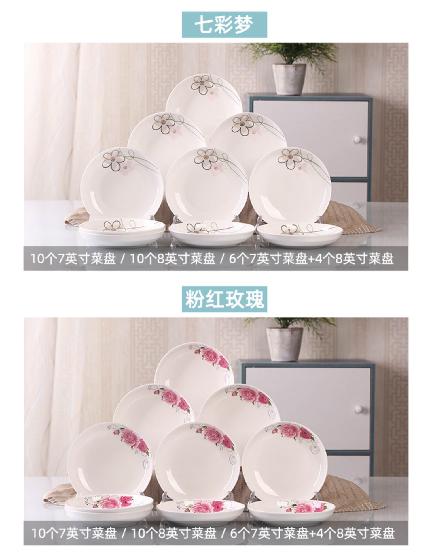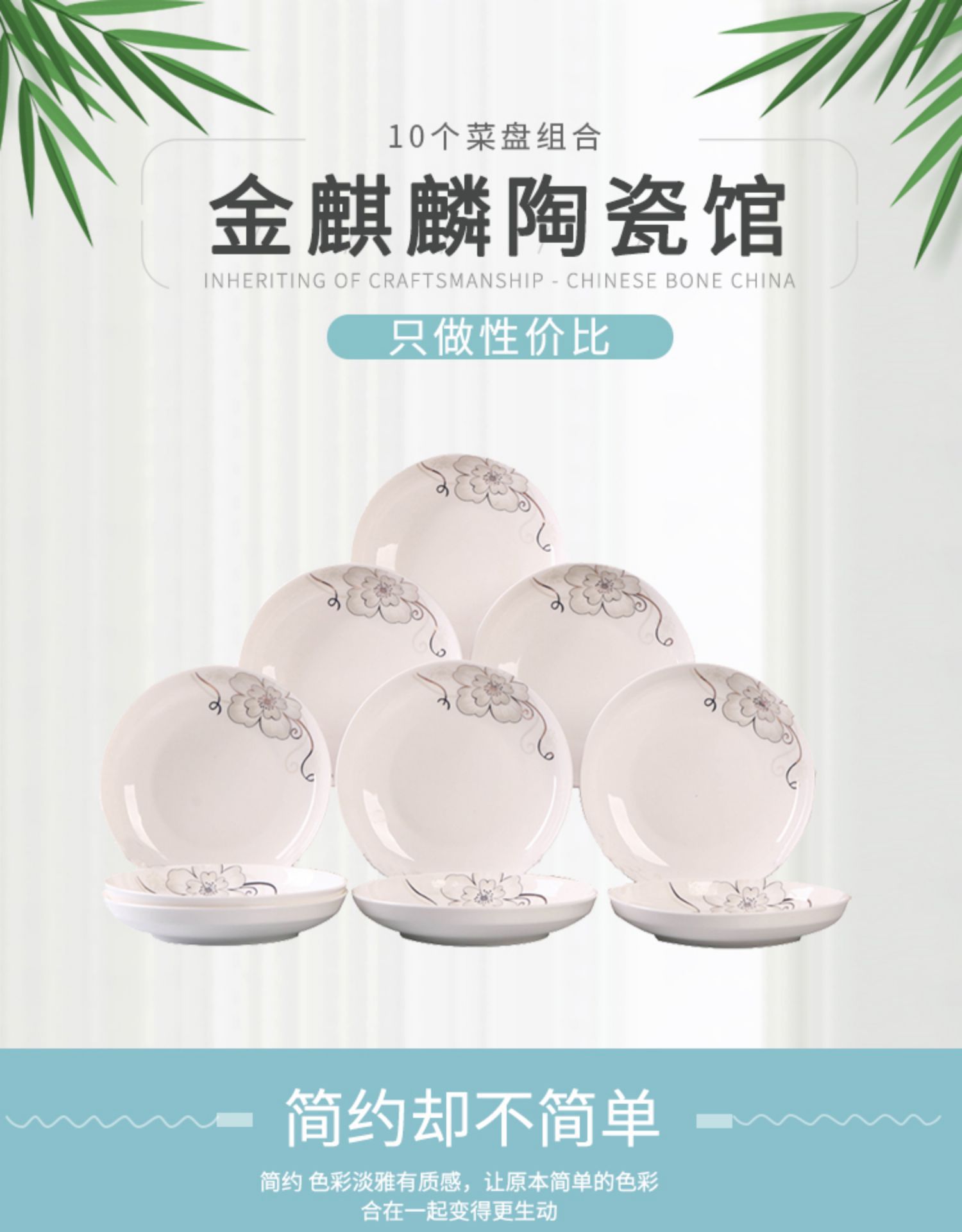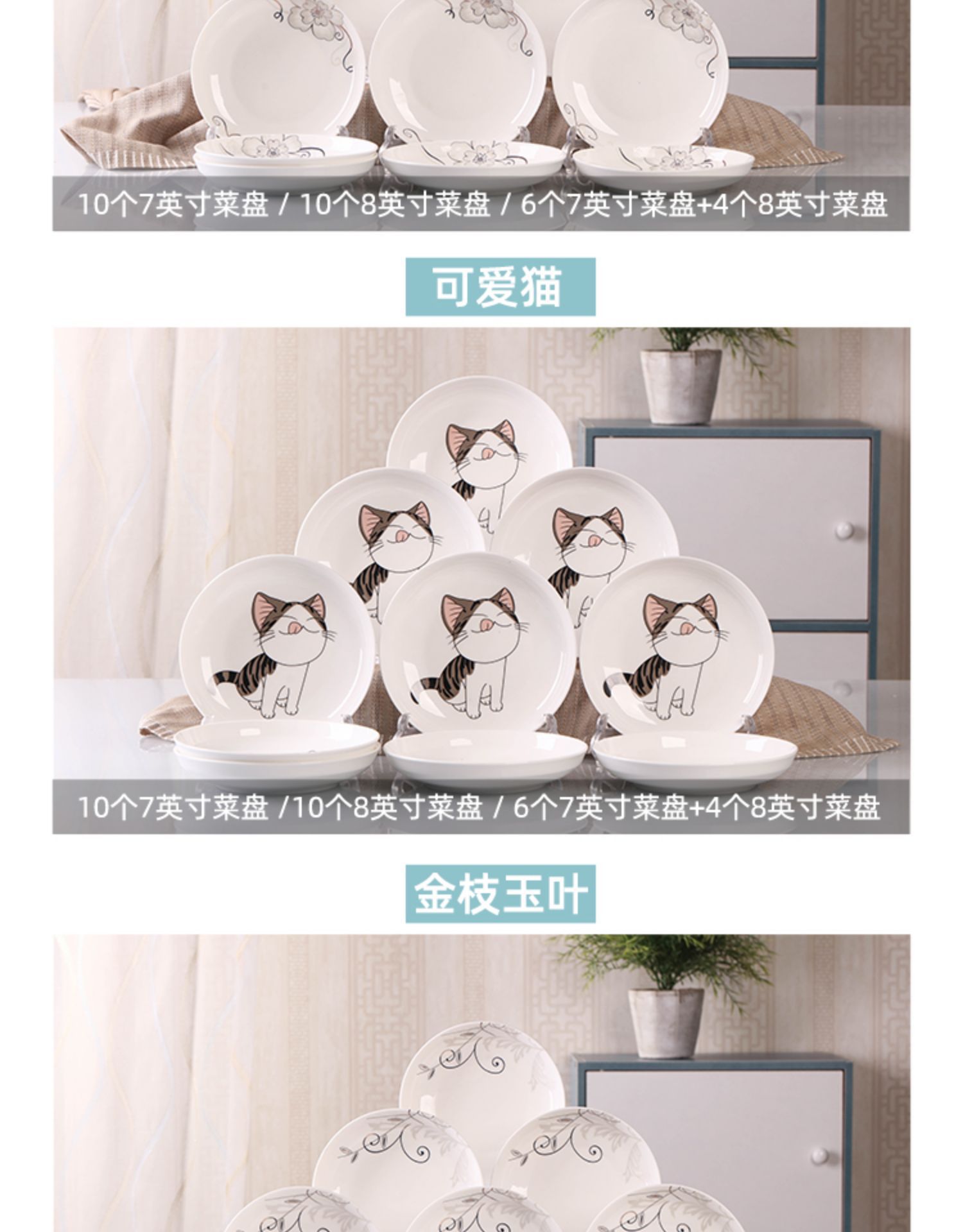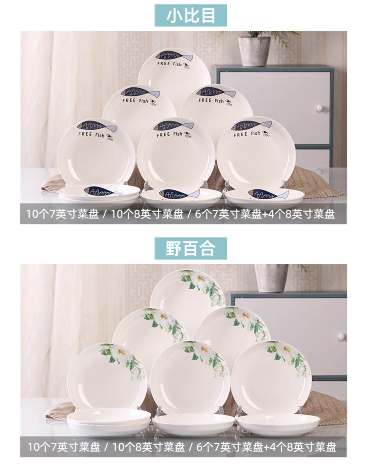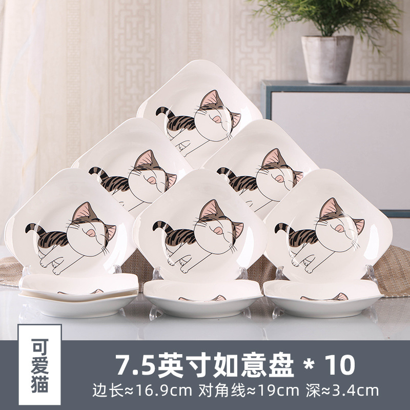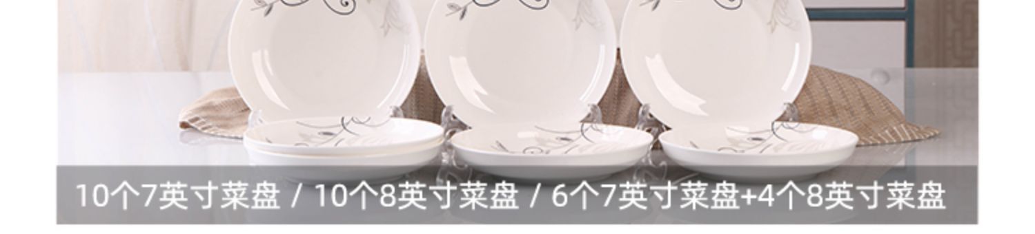 Household 10 dish ceramic tableware circular combination simple plate set new fish plate creative dining plate