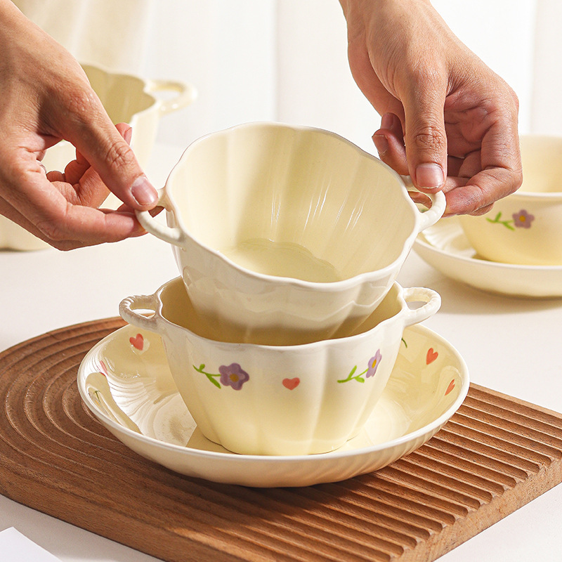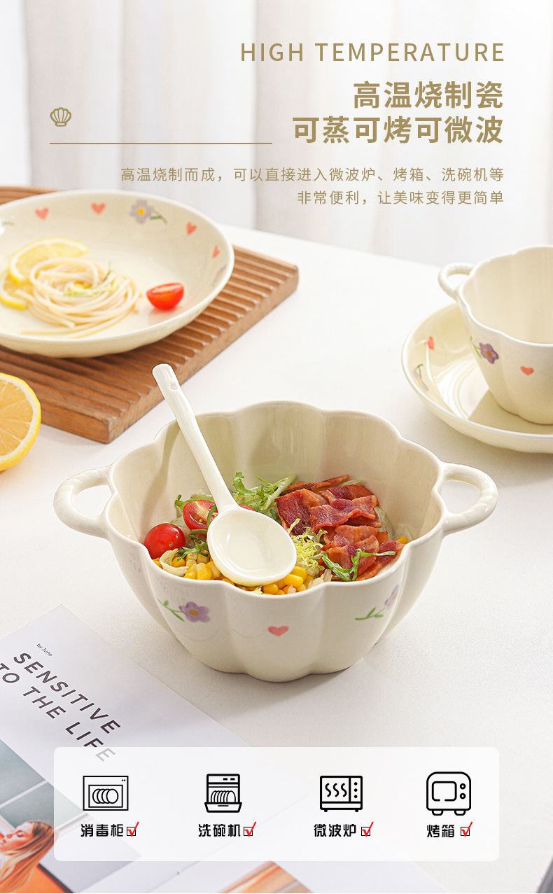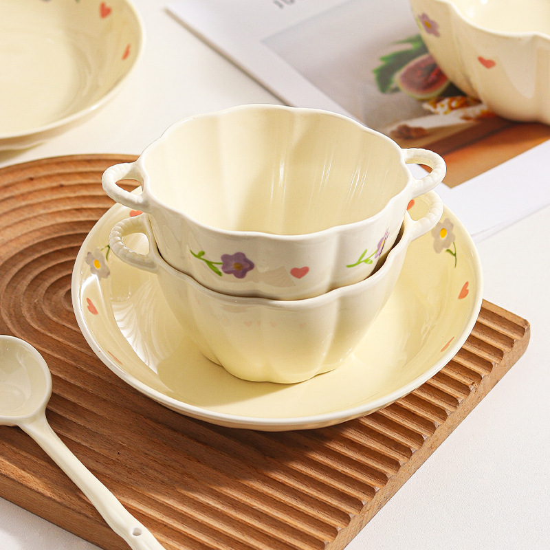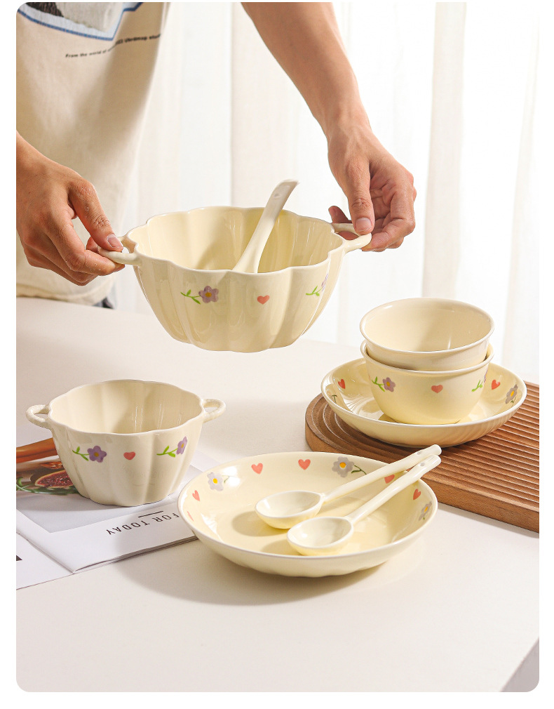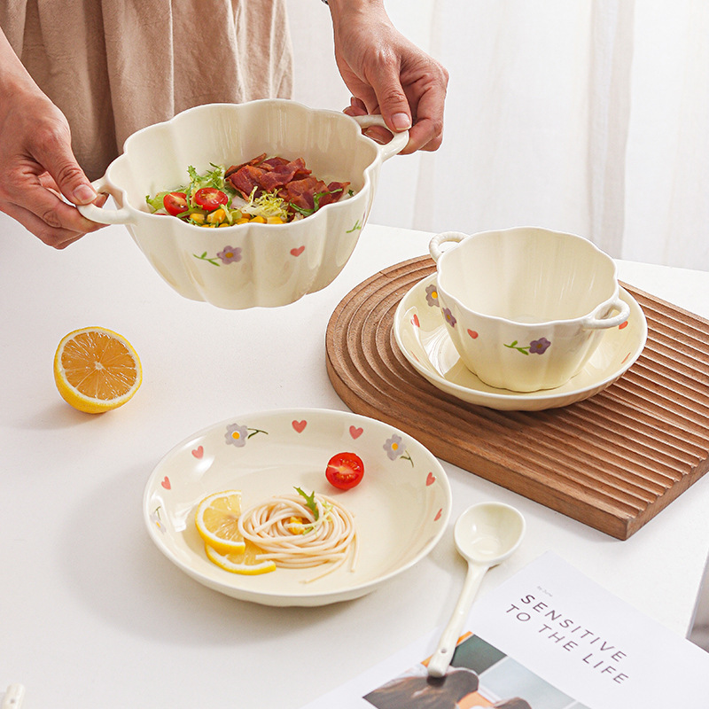 Вистерия молочное масло ins тарелка набор посуды домашняя посуда керамическая посуда миска двойное ухо миска большой суп с ложкой