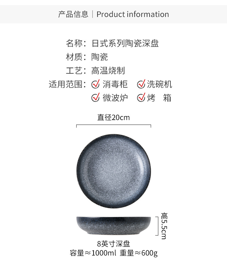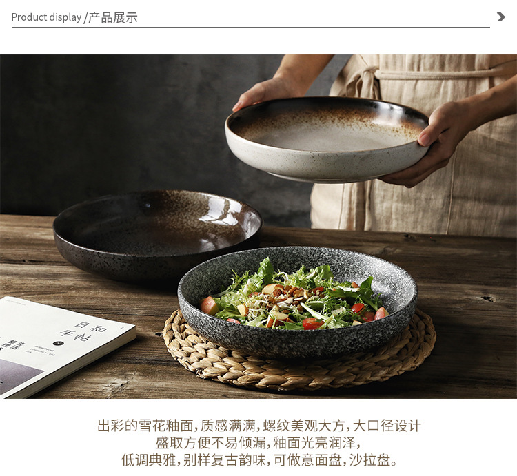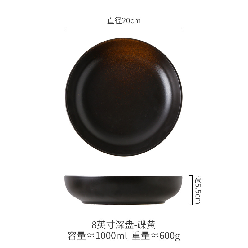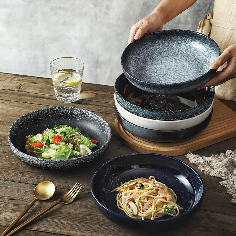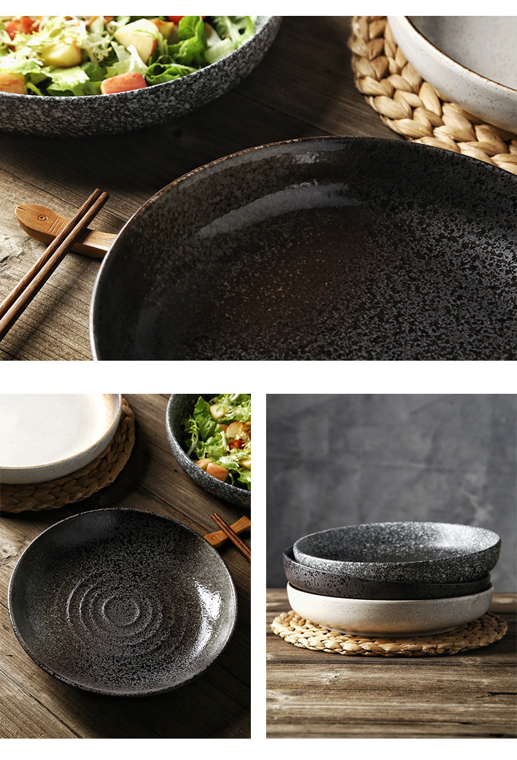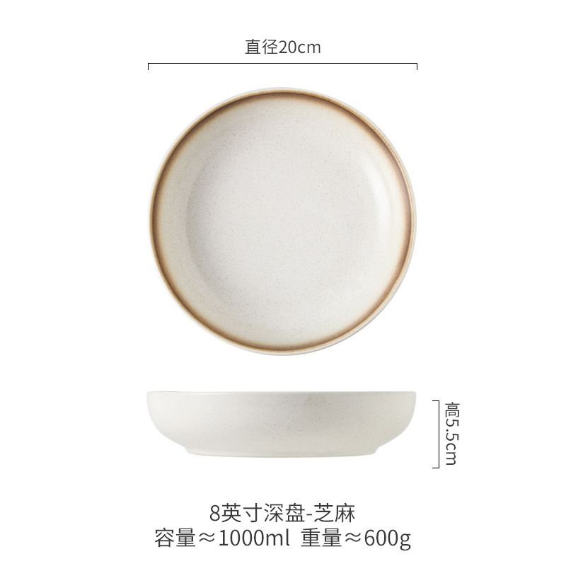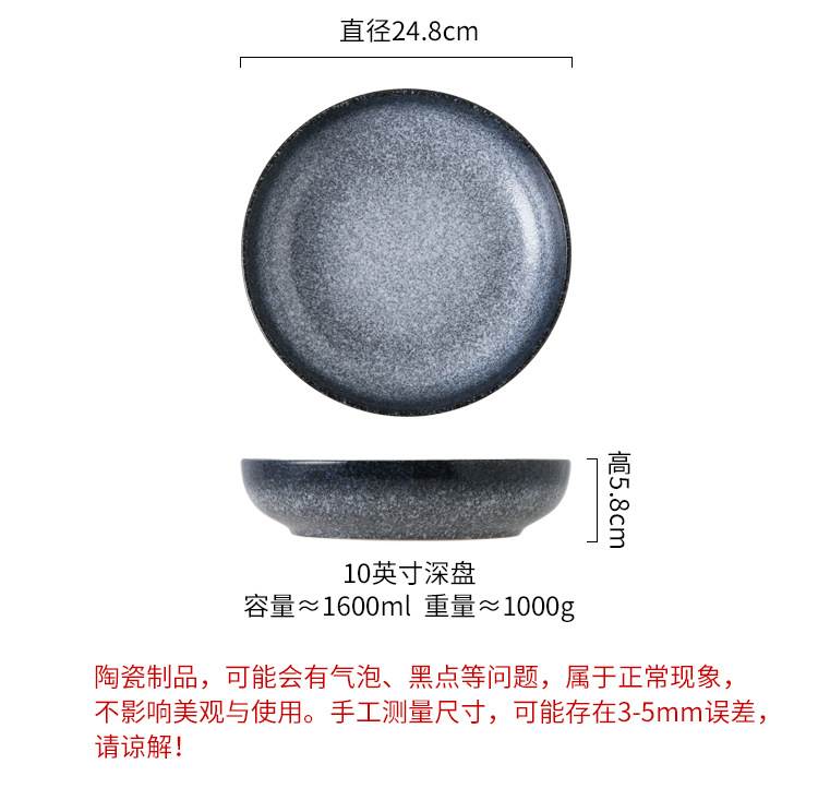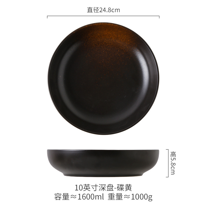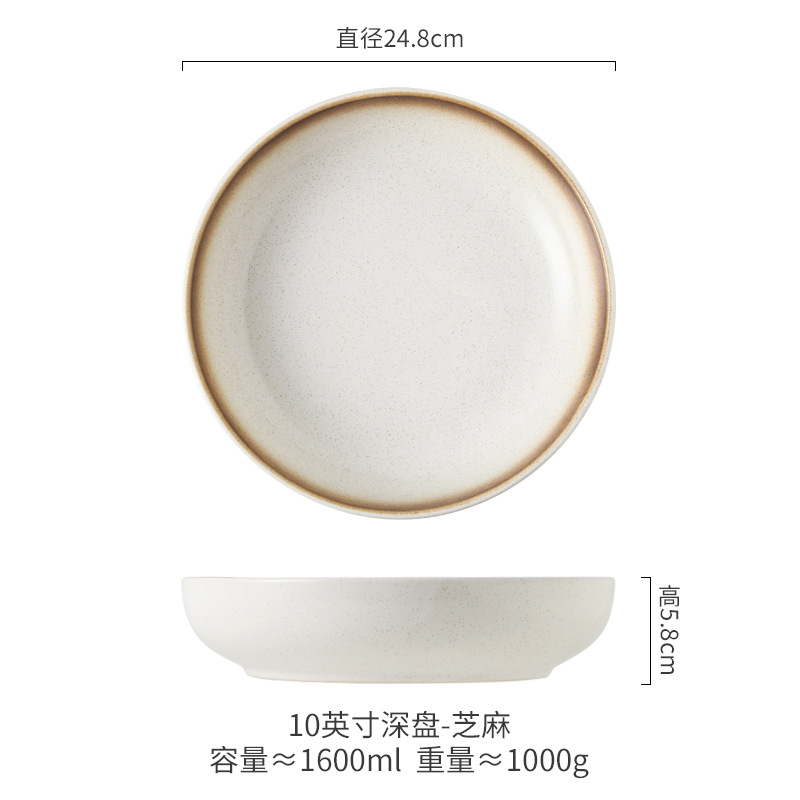 Deep Plate Japanese Restaurant Round Ceramic Plate Household 10 inch Salad Plate Kitchen Creative Tableware Soup Plate