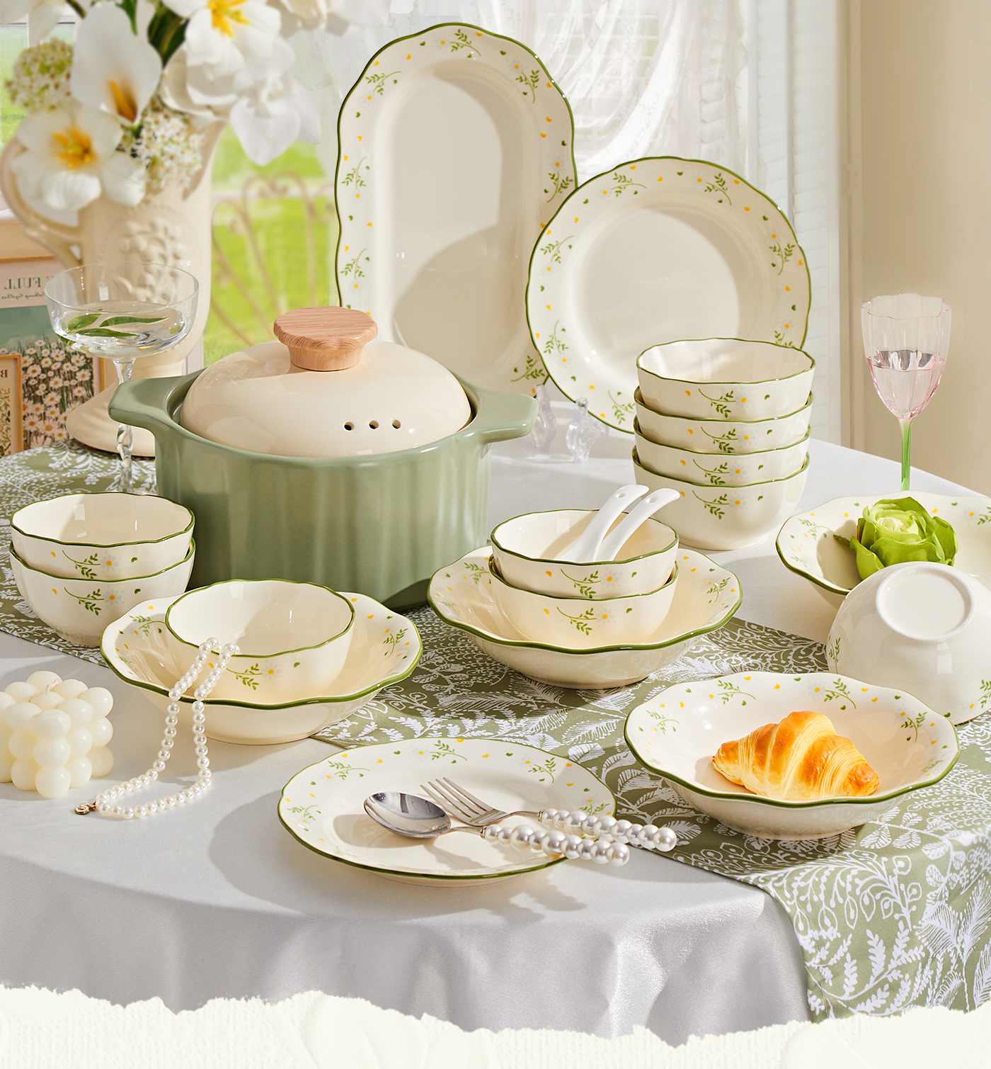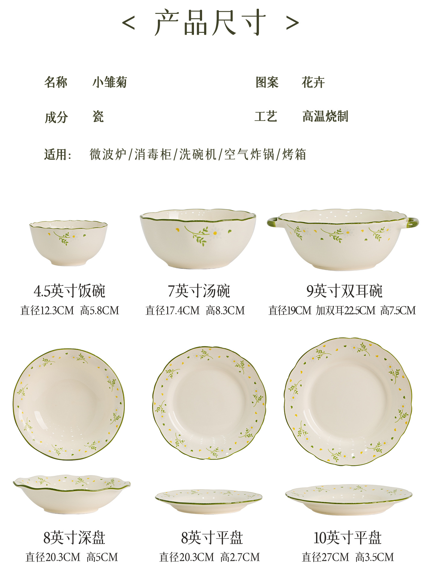 2026 Новый пасторальный ветер ромашковая керамическая посуда Домашняя 2025 Новый посуда для палочек для еды тарелка посуда набор