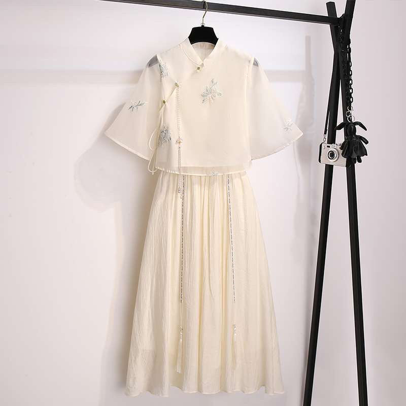 新中式国风套装汉服2024新款夏季今年流行漂亮古风短款女装连衣裙,