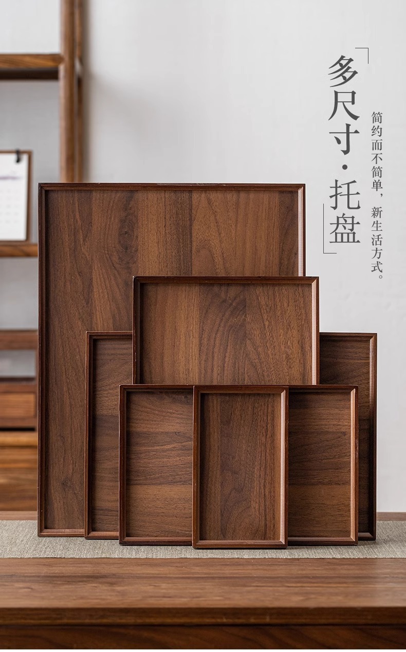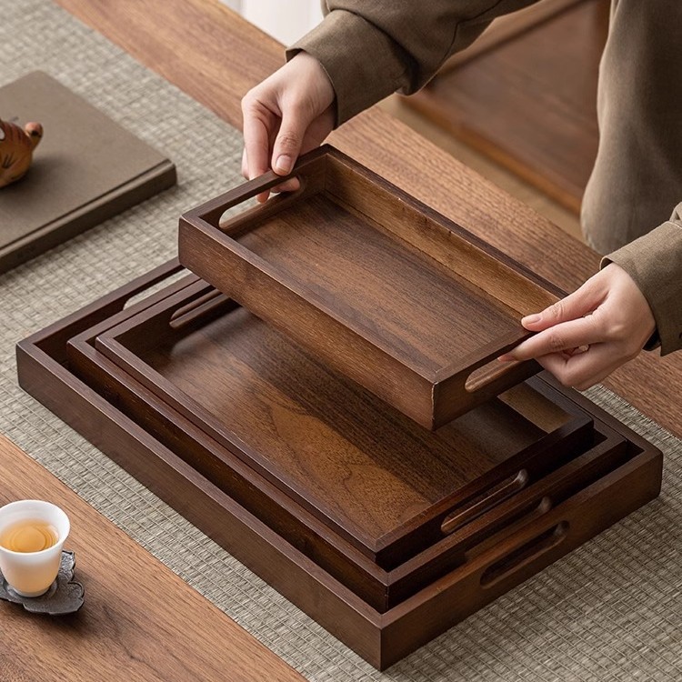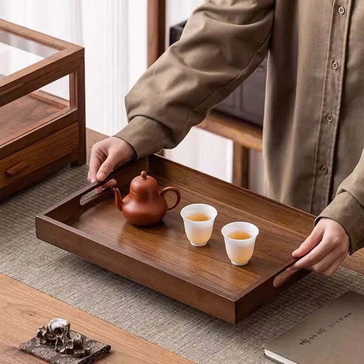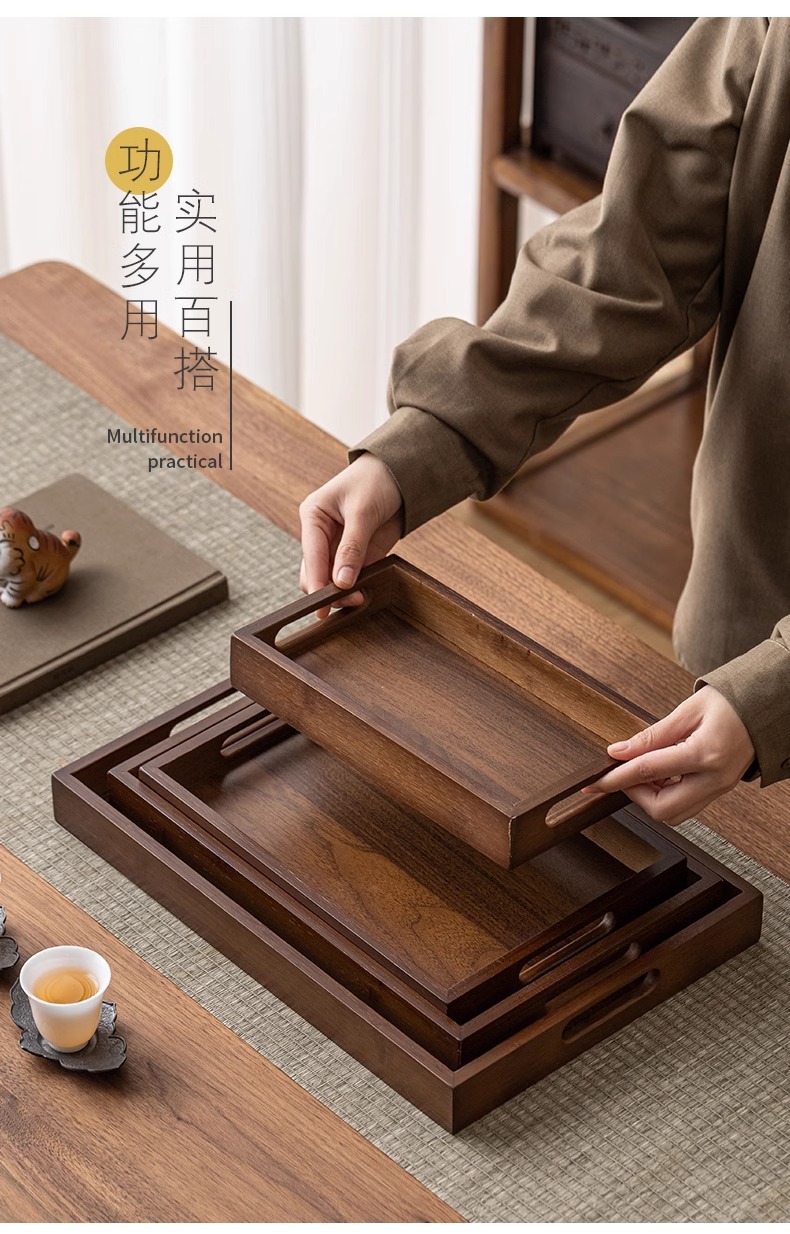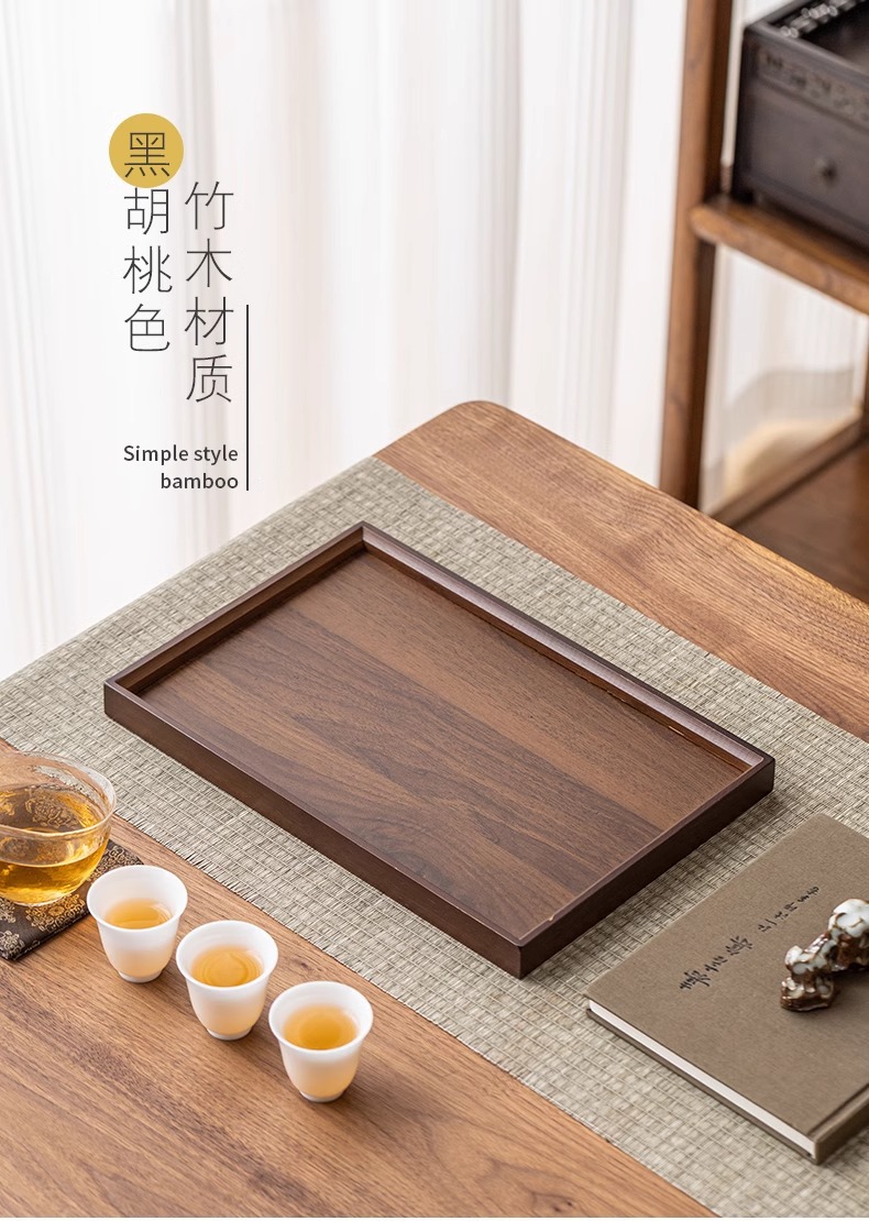 Household wooden tea cups, dining plates, tea cups, tea utensils, storage plates, stove, bamboo rectangular tray for boiling tea, tea tray
